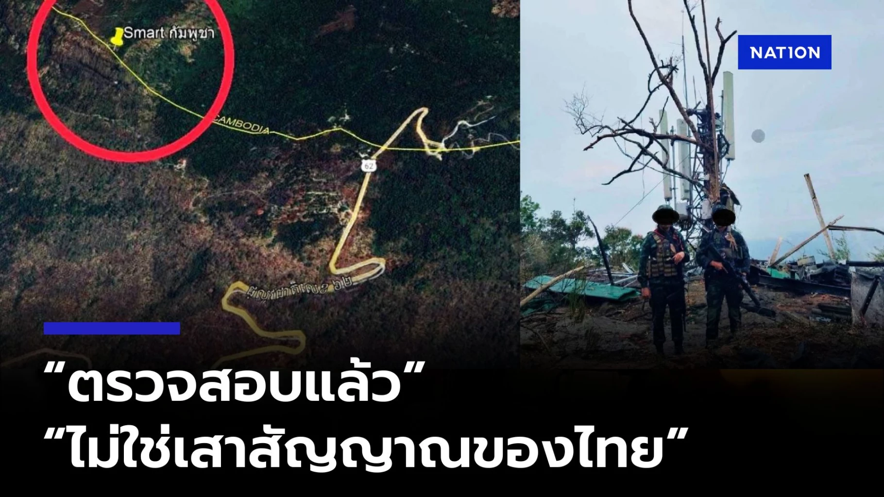 จากการตรวจสอบของสำนักงาน กสทช. เขต 22 ตรวจสอบแล้วเป็นเครือข่าย smart ของกัมพูชาไม่ใช่เสาของโอเปอเรเตอร์ไทย กสทช.