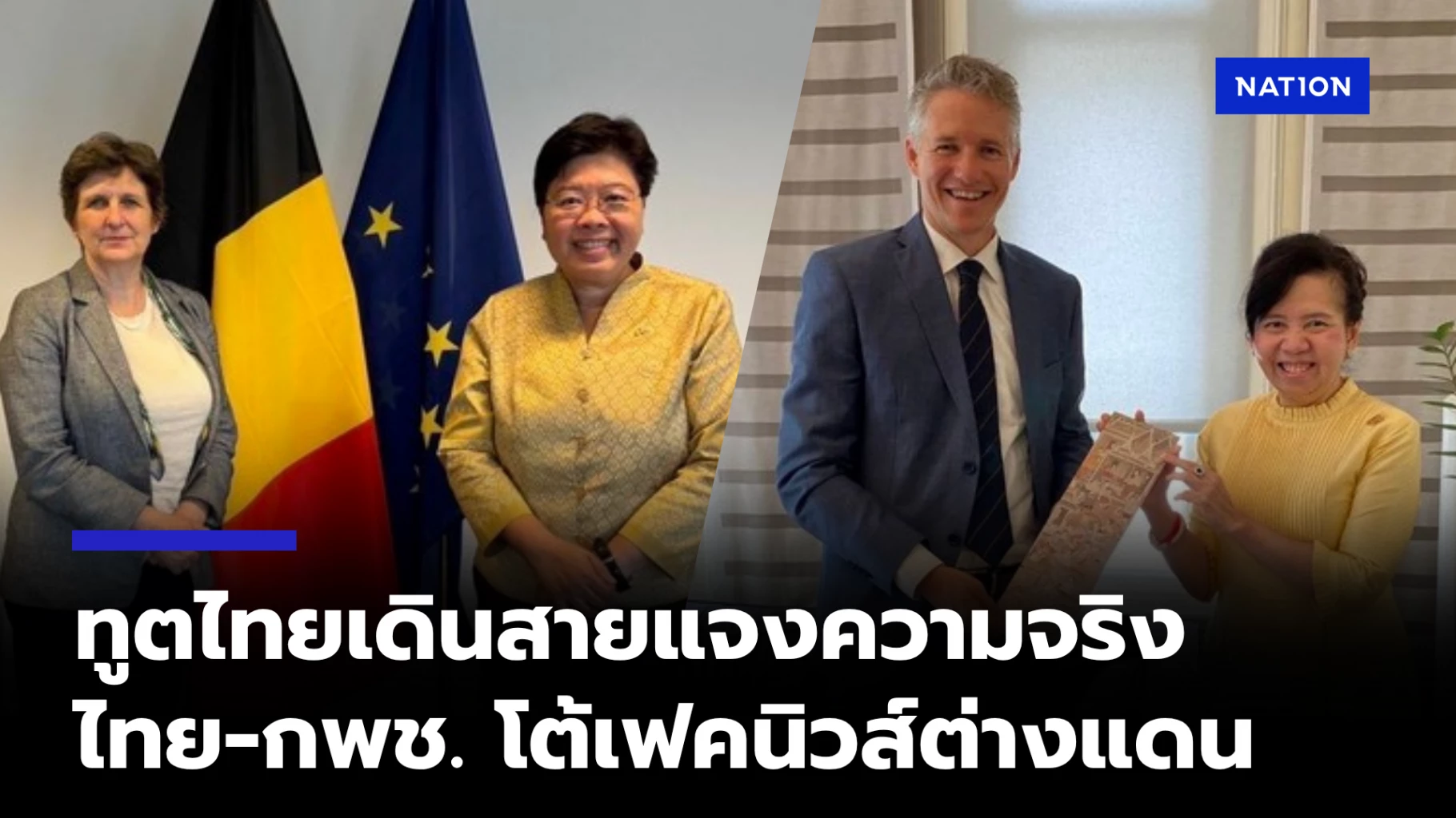 นางกาญจนา ภัทรโชค หรือ ทูตเจี๊ยบ เอกอัครราชทูตไทย ณ กรุงบรัสเซลส์ ราชอาณาจักรเบลเยียม (อดีตอธิบดีกรมสารนิเทศและอดีตโฆษกกระทรวงการต่างประเทศ) พร้อมด้วยนายอัสรอฟ ศาสนกุล และนางสาวเยาวลักษณ์ สุทธิมนัส ที่ปรึกษา ได้เข้าพบนายอันดรีส กริฟฟรอย (Andries Gryffroy) รองประธานวุฒิสภาเบลเยียม คนที่หนึ่ง ในฐานะประธานกลุ่มมิตรภาพรัฐสภาเบลเยียม-ไทย รวมถึงยังได้เข้าพบนางเปาลา ปัมปาโลนี (Paola Pampaloni) รองอธิบดีกรมเอเชียและแปซิฟิก และนางเล-ลา เฟอร์นันเดซ สเตมบริดจ์ (Leila Fernandez-Stembridge) ผู้อำนวยการกองเอเชียตะวันออกเฉียงใต้ กระทรวงการต่างประเทศสหภาพยุโรป, นายแซม ไชร-เนอร์ (Sam Schreiner) อธิบดีกรมเอเชีย กระทรวงการต่างประเทศลักเซมเบิร์ก และนางเบียร์กิท สตีเวนส์ (Birgit Stevens) รองปลัดกระทรวงการต่างประเทศเบลเยียม เพื่อชี้แจงเกี่ยวกับสถานการณ์ชายแดนไทย-กัมพูชา เพื่อชี้แจงเกี่ยวกับสถานการณ์ไทย-กัมพูชาอย่างต่อเนื่อง และเน้นย้ำว่า ไทยมิได้เป็นฝ่ายเริ่มต้นความขัดแย้ง แต่จำเป็นต้องตอบโต้การโจมตีโดยกัมพูชา ที่มีเป้าหมายต่อพลเรือน และสถานที่พลเรือน เช่น โรงพยาบาล โรงเรียน ที่ฝ่ายกัมพูชาดำเนินการก่อน ตั้งแต่เมื่อช่วงเช้าวันที่ 24 กรกฎาคม 2568 โดยฝ่ายไทย มุ่งตอบโต้เฉพาะเป้าหมายทางการทหารเท่านั้น และปฏิบัติตามกรอบกฎหมายระหว่างประเทศและพันธกรณีอย่างเคร่งครัด พร้อมยืนยันความมุ่งมั่นของไทย ในการธำรงไว้ซึ่งสันติภาพ การใช้สันติวิธีในการแก้ไขปัญหา และการเคารพต่อกฎหมายและหลักสากล รวมทั้งข้อตกลงหยุดยิงและกลไกการเจรจาหารือ