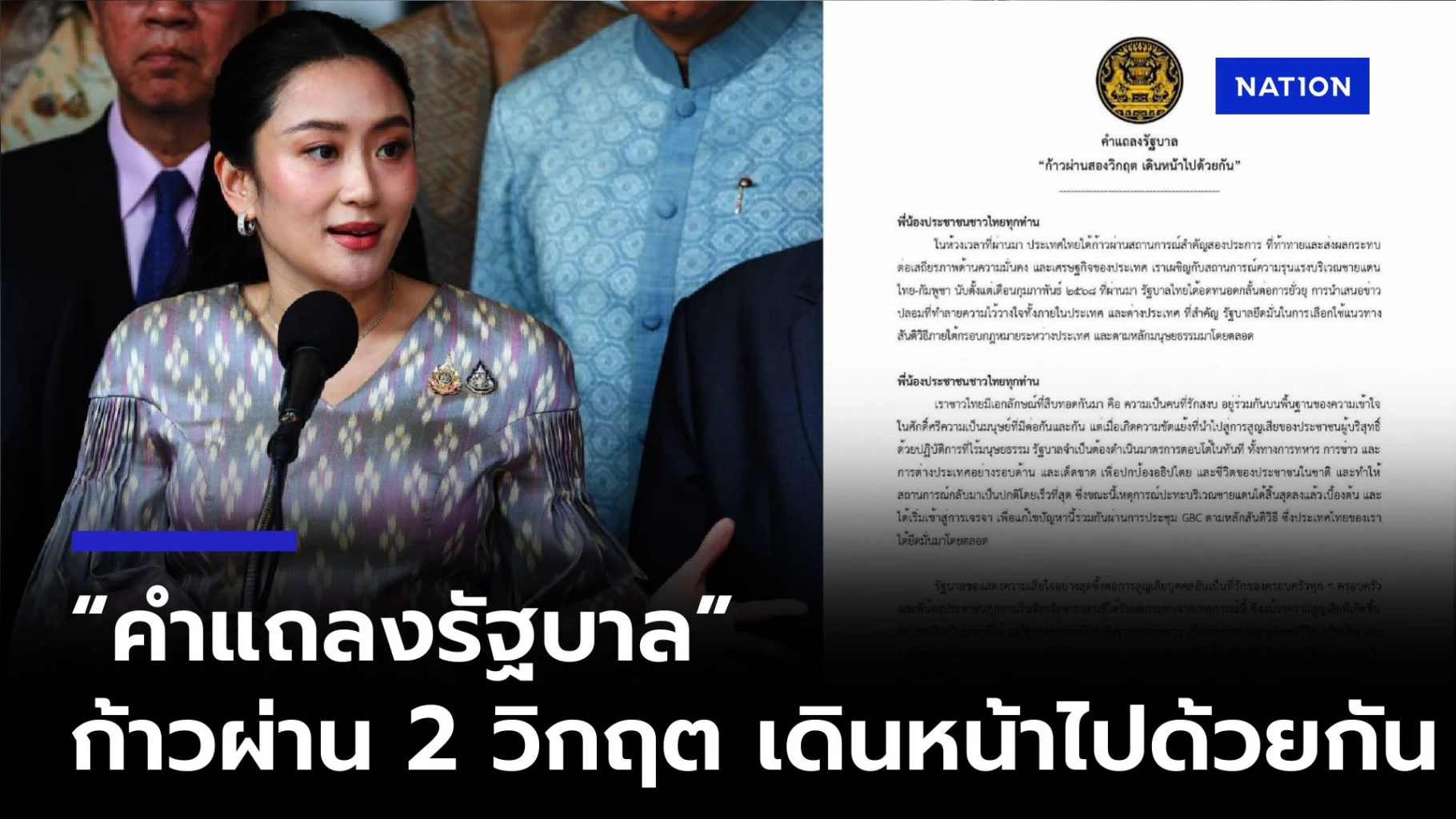 5 สิงหาคม 2568 รัฐบาลแพทองธาร ได้ออกคำแถลงรัฐบาล ในหัวข้อ "ก้าวผ่านสองวิกฤต เดินหน้าไปด้วยกัน" โดยมีนายภูมิธรรม เวชยชัย รองนายกรัฐมนตรีและ รมว.มหาดไทย ในฐานะรักษาราชการแทนนายกรัฐมนตรี เป็นผู้อ่านคำแถลงต่อสาธารณชน
