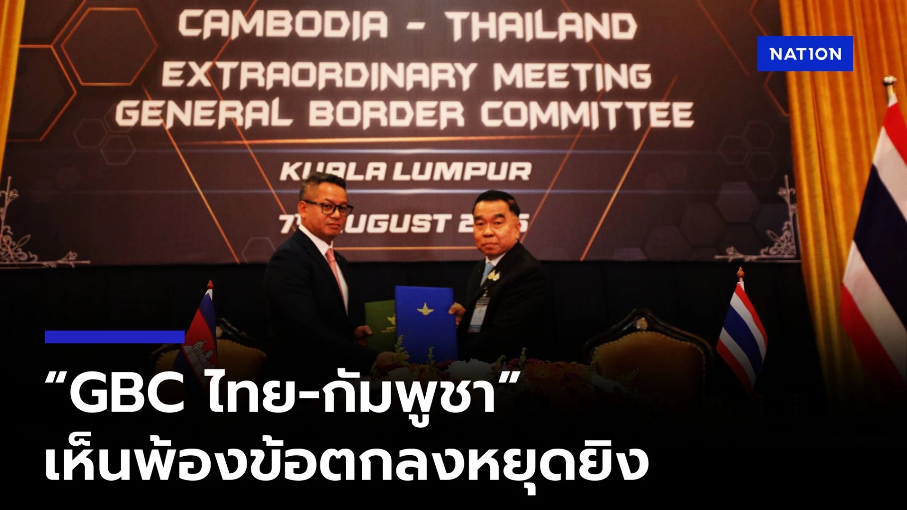 7 สิงหาคม 2568 การประชุมคณะกรรมการชายแดนทั่วไป (General Border Committee: GBC) ไทย - กัมพูชา สมัยวิสามัญ ใช้เวลากว่า 1 ชั่วโมง โดย 2 ฝ่ายเห็นพ้องแนวทางการปฏิบัติตามข้อตกลงหยุดยิง 13 ข้อระหว่างกัน ซึ่งเป็นแนวทางที่ทุกหน่วยงานที่เกี่ยวข้องของฝ่ายไทย ร่วมจัดทำกับฝ่ายเลขานุการของคณะกรรมการฯ ฝ่ายกัมพูชา