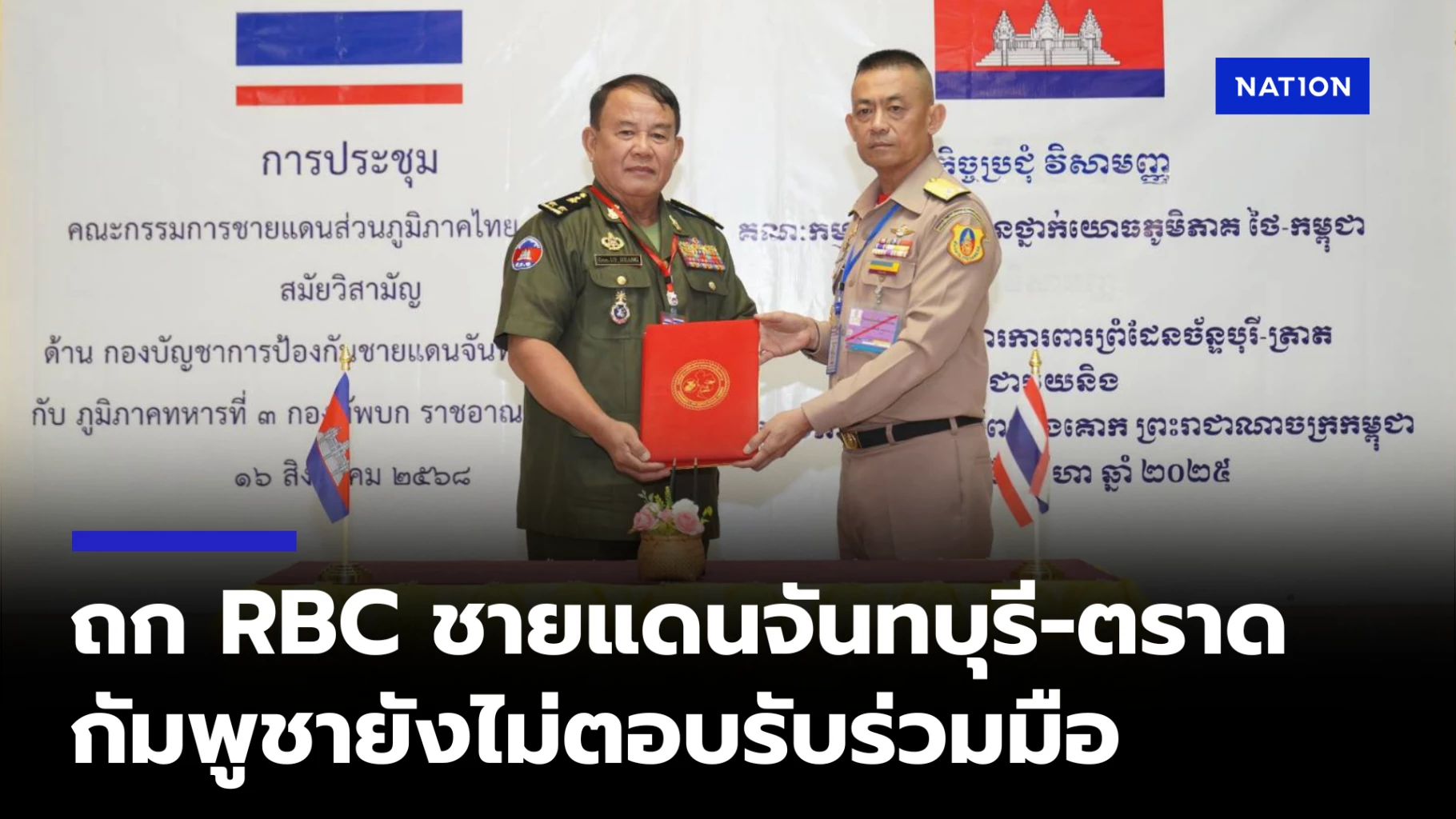 16 สิงหาคม 2568 เมื่อเวลา 09.30 น. ที่โรงแรมบ้านทะเลภู รีสอร์ท อำเภอคลองใหญ่ จังหวัดตราด พลเรือโท อภิชาติ ทรัพย์ประเสริฐ ผู้บัญชาการนาวิกโยธิน และผู้บัญชาการกองกำลังป้องกันจันทบุรีและตราด ในฐานะประธานฝ่ายไทย ร่วมการประชุมคณะกรรมการชายแดนส่วนภูมิภาค (Regional Border Committee: RBC) ไทยกัมพูชา สมัยวิสามัญ โดยมีผู้แทนฝ่ายไทยเข้าร่วม อาทิ นายพีระ เอี่ยมสุนทร รองผู้ว่าราชการจังหวัดตราด และผู้แทนจากหน่วยงานที่เกี่ยวข้อง ขณะที่ฝ่ายกัมพูชา นำโดย พลตรี อุย เฮียง ผู้บัญชาการทหารภูมิภาค 3 พร้อมผู้แทนระดับสูงรวม 17 คน เข้าร่วมประชุม