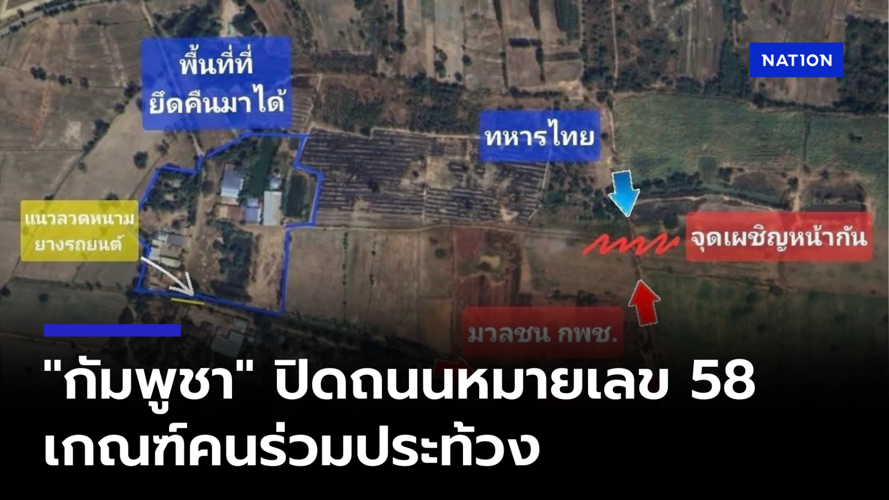 4 กันยายน 2568 เวลา 13.30 น. กองทัพภาคที่ 1 เปิดเผยว่า กองกำลังบูรพา ได้ตรวจพบว่า มีการระดมชาวกัมพูชานอกพื้นที่ โดยทำการปิดถนนหมายเลข 58 ฝั่งกัมพูชา และเกณฑ์คนที่สัญจรไปมา ให้เข้ามาสมทบมวลชนกัมพูชาประท้วงทหารไทย ใกล้บริเวณหลักเขตแดนที่ 46 เหตุไม่พอใจฝ่ายไทยที่ติดป้ายเตือนให้ประชาชนชาวกัมพูชา 170 หลังคาเรือน ย้ายออกจากพื้นที่รุกล้ำประเทศไทย บ้านหนองจาน จ.สระแก้ว ซึ่งถือเป็นการละเมิดข้อตกลงหยุดยิง
