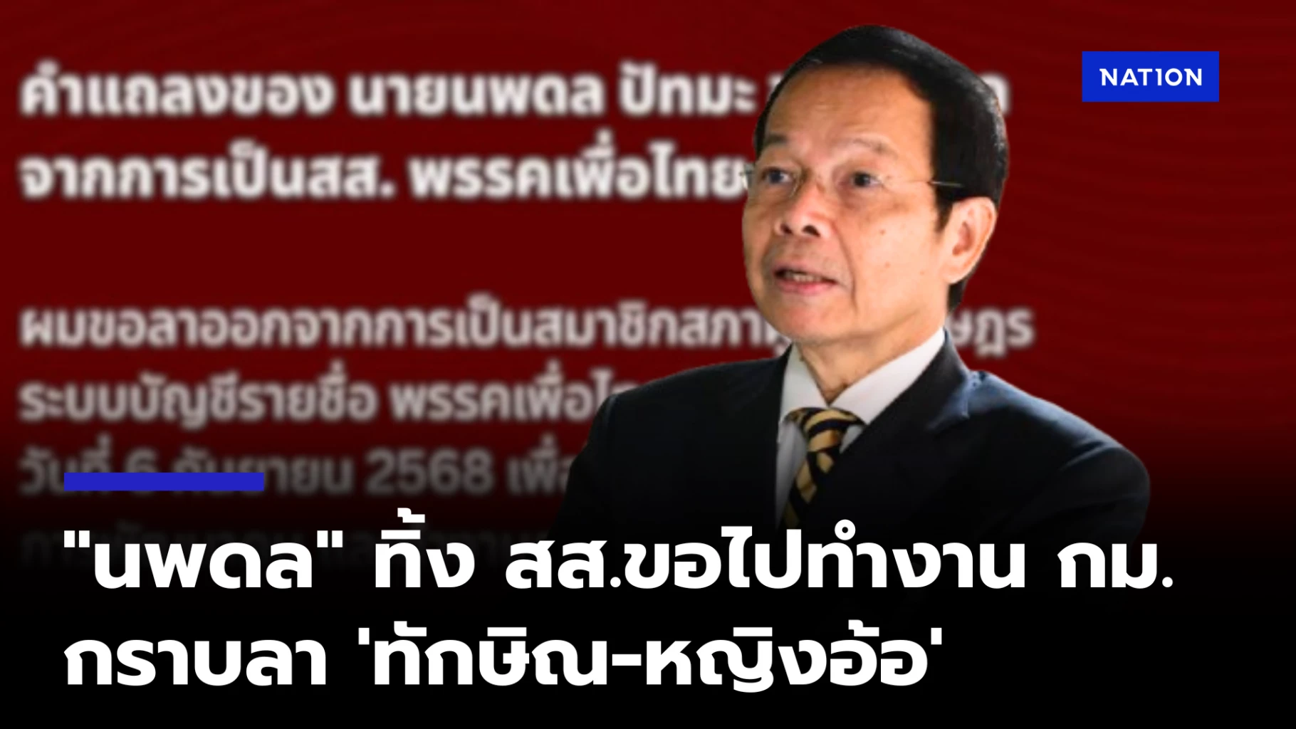 นายนพดล ปัทมะ สส.บัญชีรายชื่อ พรรคเพื่อไทย โพสต์เฟซบุ๊กส่วนตัว ขอลาออกจากการเป็น สส. พรรคเพื่อไทย โดยระบุว่า “ขอลาออกจากการเป็นสมาชิกสภาผู้แทนราษฎร ระบบบัญชีรายชื่อ พรรคเพื่อไทยนับตั้งแต่วันที่ 6 กันยายน 2568 เพื่อไปทำงานด้านกฎหมายการพัฒนาคน และทำงานตอบแทนบุญคุณแผ่นดิน