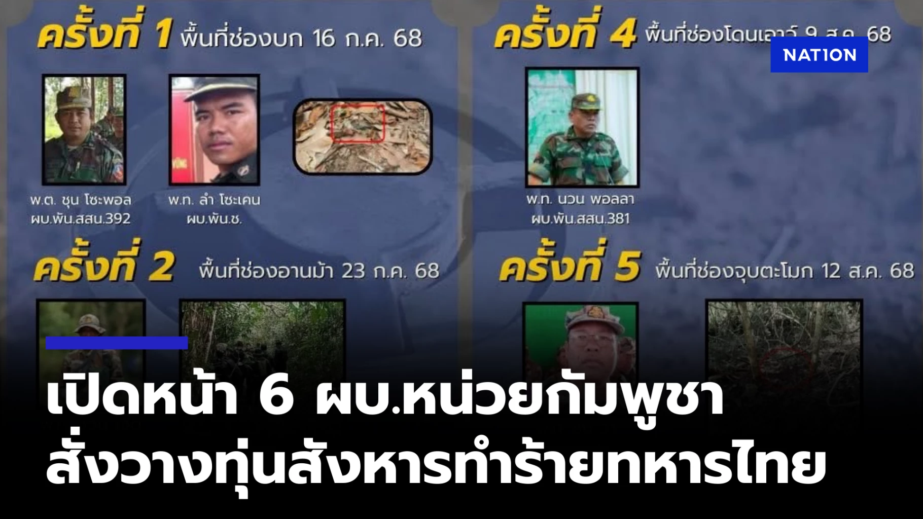 พร้อมกันนั้น ยังได้เปิดภาพและชื่อของทหารกัมพูชาวางระเบิดสังหารบุคคล โดยเนื้อหาระบุถึง ผบ.หน่วยพื้นที่กำลังเผชิญหน้าของเขมร ทั้ง 6 จุดที่ทหารไทยเหยียบระเบิด มีดังนี้