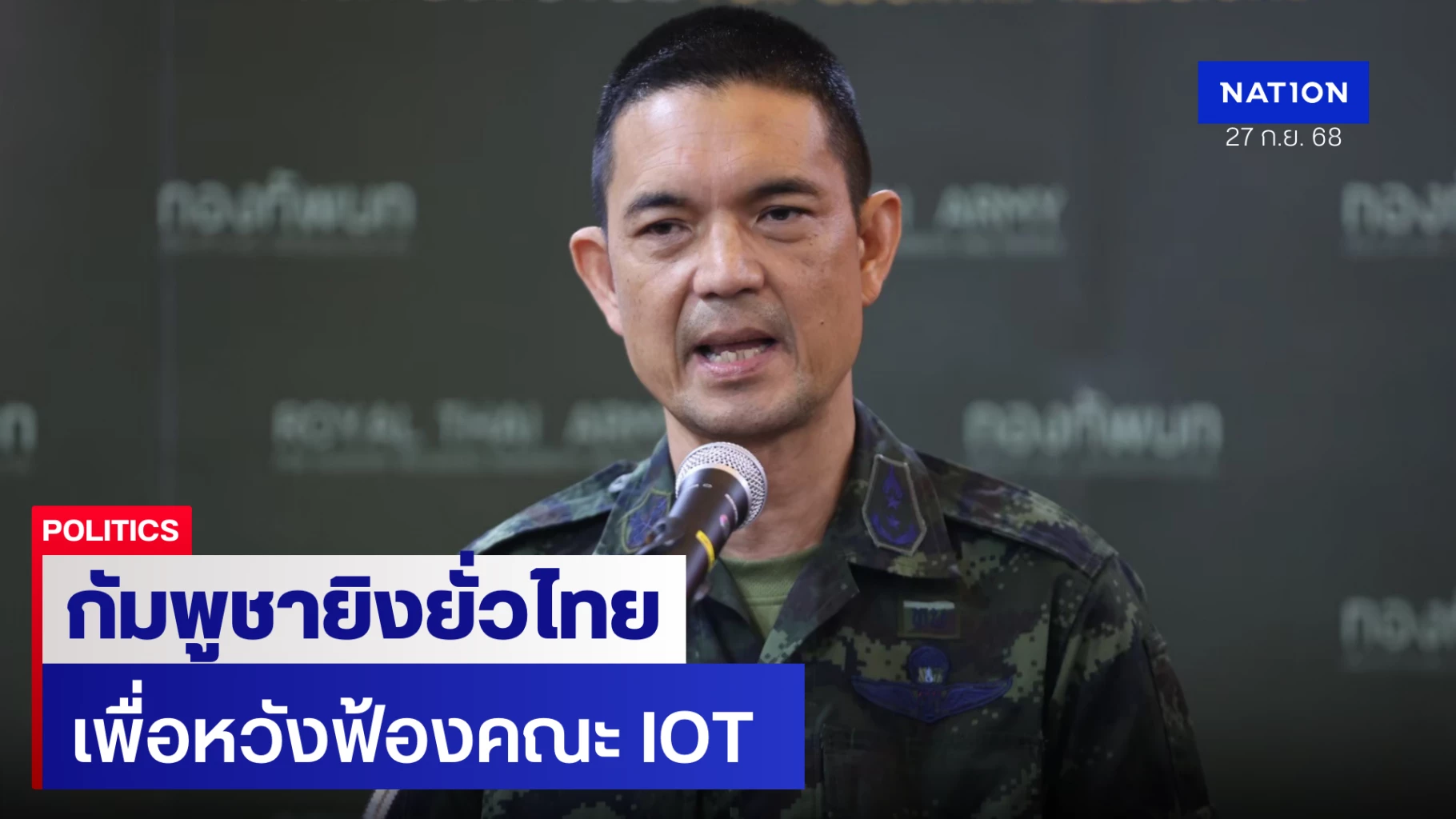 27 กันยายน 2568 พลตรี วินธัย สุวารี โฆษกกองทัพบก เปิดเผยว่า เวลาประมาณ 12.00–12.30 น. กองทัพบกได้รับรายงานจากกองทัพภาคที่ 2 ตรวจพบทหารกัมพูชาใช้อาวุธปืนเล็ก และเครื่องยิงลูกระเบิด ยิงเข้ามายังพื้นที่บริเวณช่องอานม้า จ.อุบลราชธานี