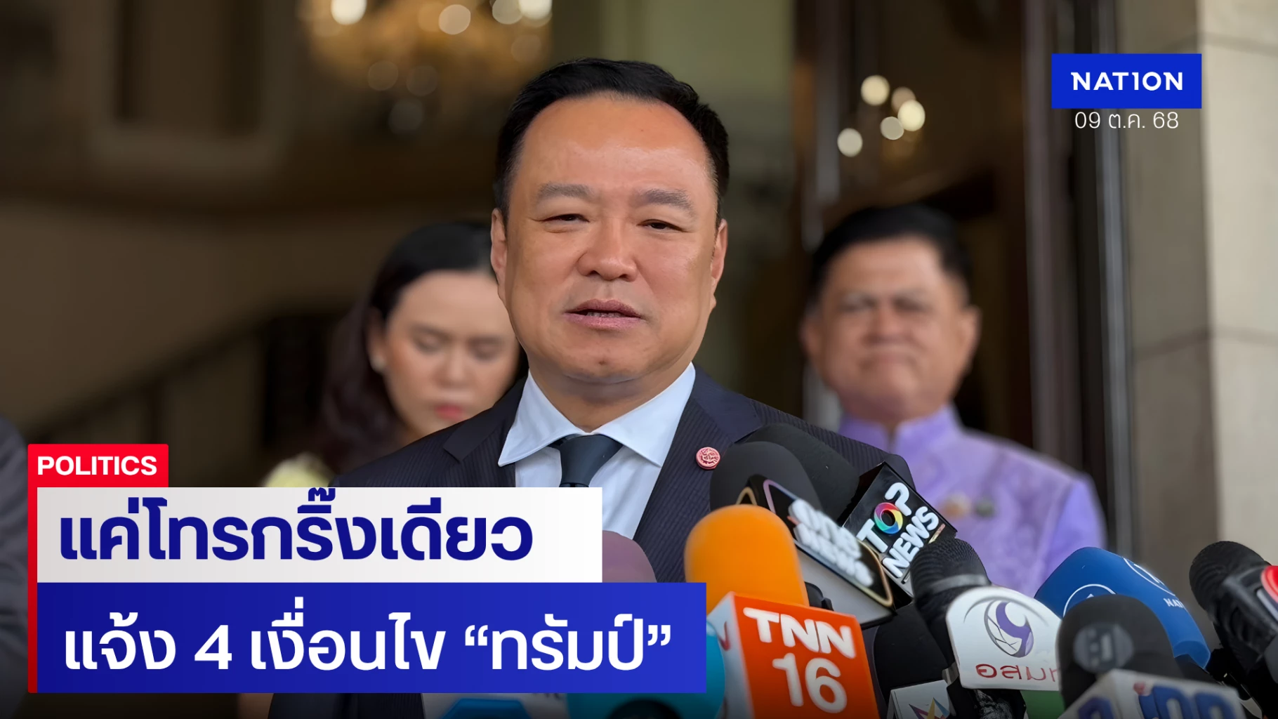 9 ตุลาคม 2568 นายอนุทิน ชาญวีรกูล นายกรัฐมนตรี และ รมว.มหาดไทย เปิดเผยว่า วันที่ 16 ตุลาคมนี้ จะมีการเดินทางไปเยือนสาธารณรัฐประชาธิปไตยประชาชนลาว ซึ่งมีหลายประเด็นที่จะหารือกัน และหลังจากนั้นก็จะเดินทางไปประชุมสุดยอดผู้นำอาเซียน (ASEAN SUMMIT) ประชุมอาเซียน ที่ประเทศมาเลเซีย ส่วนจะมีโอกาสได้พบกับผู้นำกัมพูชาหรือไม่ นายอนุทิน ระบุว่า เราได้แจ้งเงื่อนไขไปแล้ว 4 ข้อ ที่จะทำให้มีการพูดคุยต่อไปได้ ข้อให้กัมพูชาได้ปฏิบัติ คือ เรื่องของการถอนอาวุธหนัก ทำให้ฝ่ายไทยไม่รู้สึกว่าเป็นอันตรายต่อประชาชน และเรื่องของสแกมเมอร์ รวมถึงเรื่องที่คนกัมพูชาเข้ามาอยู่ในประเทศไทยทั้ง 4 เรื่องนี้ เป็นเรื่องที่สำคัญมาก