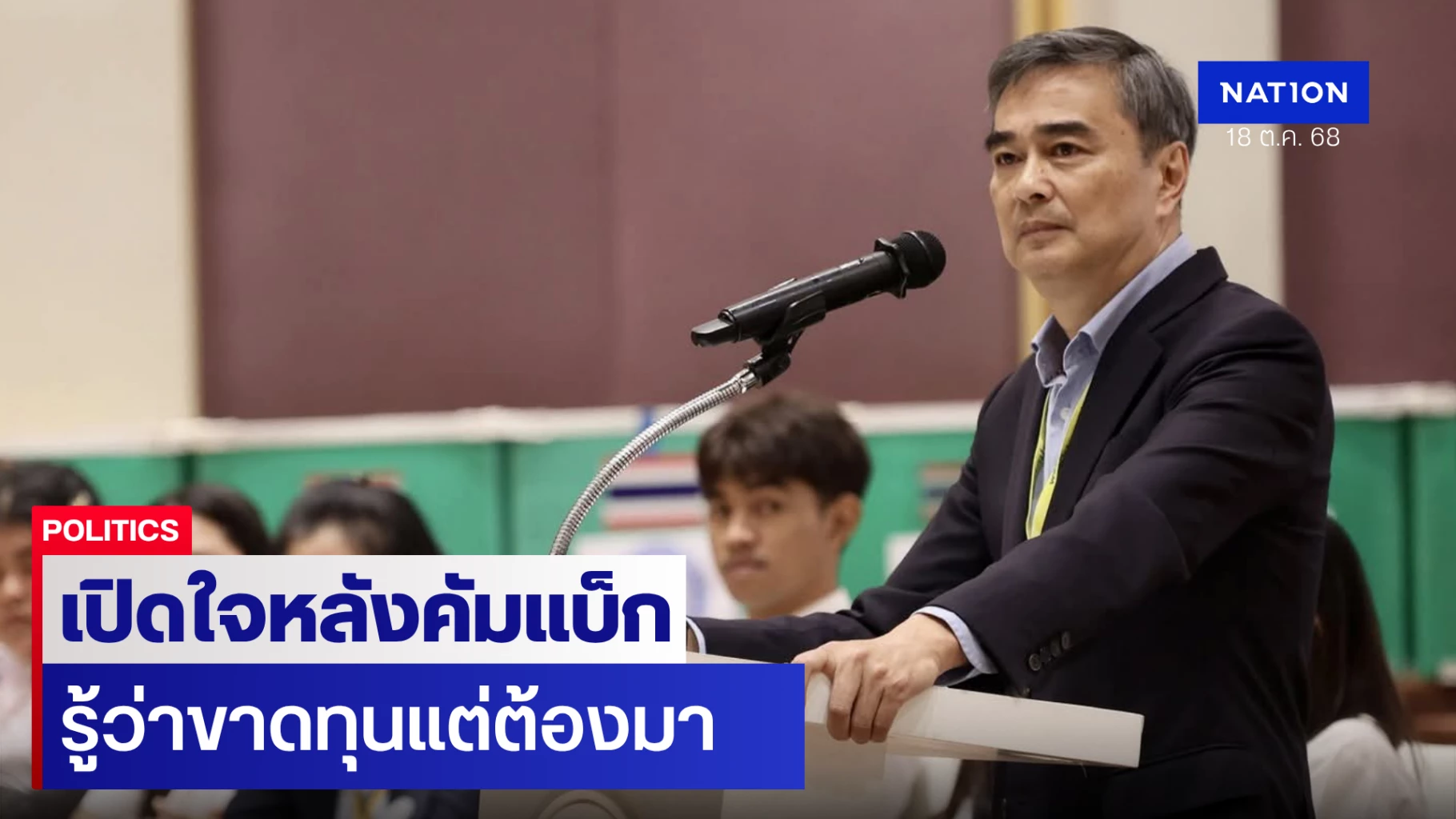 นายอภิสิทธิ์ ยังเห็นว่า ปัจจุบันเศรษฐกิจติดหล่ม สังคมเหลื่อมล้ำ ความยุติธรรมหดหาย หลายปีที่ผ่านมา ไม่ว่าจะเป็นคนภายนอกมองประเทศไทย หรือการสัมผัสกับความเป็นจริงของประชาชน ทุกคนห่วงใยว่า ประเทศไทย จะเดินต่อแบบนี้ไม่ได้ ซึ่งปีสุดท้ายที่พรรคประชาธิปัตย์ เป็นแกนนำรัฐบาล เมื่อปี 2554 เป็นปีแรกที่เศรษฐกิจ ขยับเป็นประเทศรายได้ปานกลางขั้นสูง แต่เวลาผ่านไป 14 ปี ในแผนยุทธศาสตร์ชาติ 20 ปี กลับไม่มีใครมั่นใจว่า ประเทศจะขยับไปอีกขั้นได้เมื่อใด ซึ่งการเติบโตเศรษฐกิจที่รัฐบาลคาดหวังเพียง 2% นั้น ยังไม่เพียงพอ และปัจจุบันลุ้นได้แค่เพียง ''คนละครึ่งพลัส'' กระตุ้นเศรษฐกิจในระยะสั้น ๆ และเหลือทิ้งไว้เพียงหนี้รัฐบาลที่เพิ่มขึ้น รวมถึงประเทศไทย ยังก้าวเข้าสู่สังคมสูงอายุอย่างสมบูรณ์แบบ ชีวิตคนหนุ่มสาวขาดความมั่นคง ซึ่งทุกคนล้วนต้องการมีสวัสดิการที่ดีทั้งสิ้น แต่การเมืองกลับกำลังจะหลอกสังคมที่จะยื่นสวัสดิการให้ ทั้งที่อัตราการจัดเก็บภาษีต่ำ และการผูกขาดทั้งเศรษฐกิจ และการเมือง นับวันก็มีความแน่นแฟ้นมากขึ้น ซึ่งตนจะดูดายให้ประเทศเดินต่อไปอย่างนี้ไม่ได้