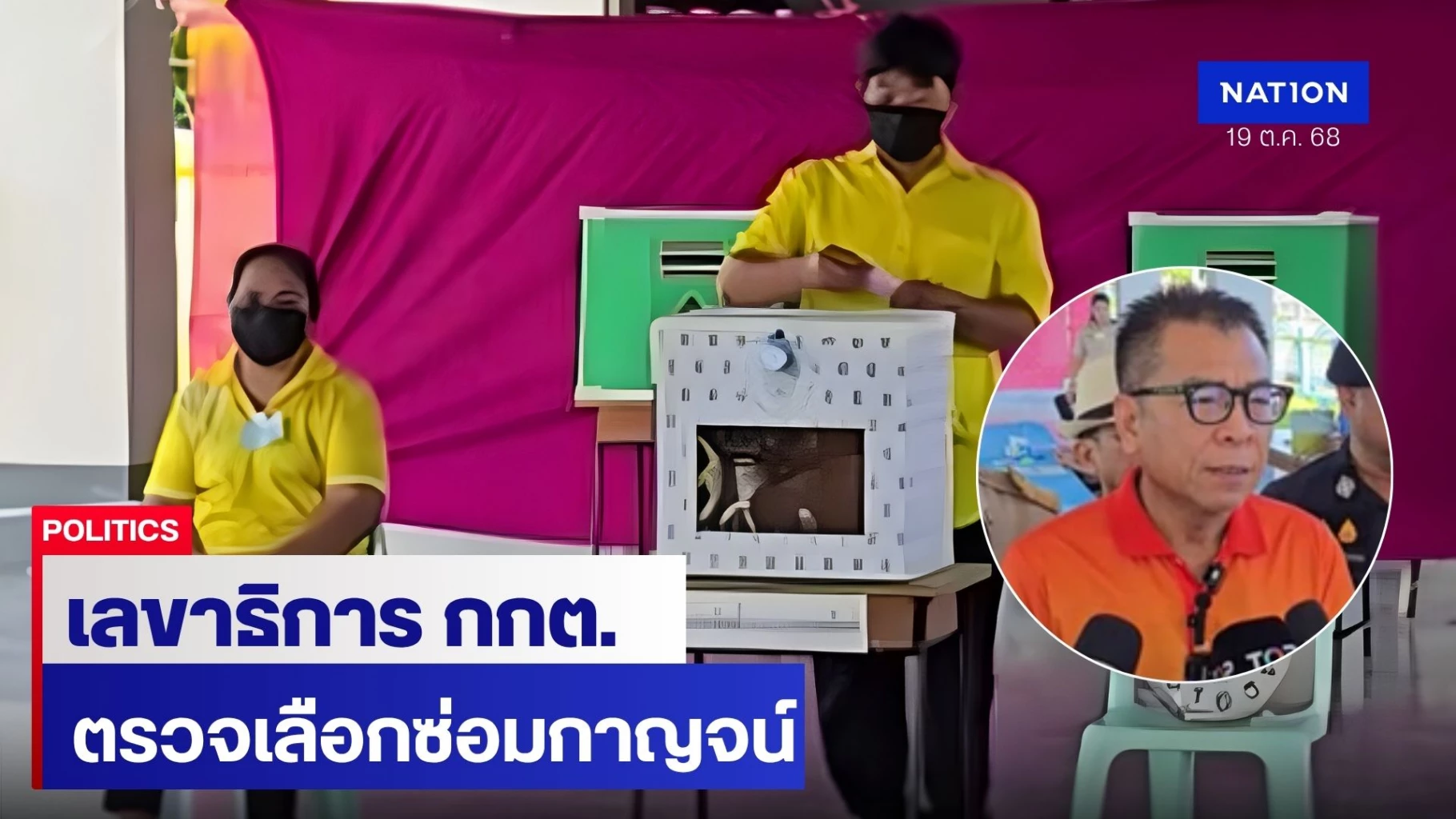 19 ตุลาคม 2568 เวลา 08.00 น. นายแสวง บุญมี เลขาธิการคณะกรรมการการเลือกตั้ง (เลขาธิการ กกต.) พร้อมด้วย นายวีระ ยี่แพร , ว่าที่ร้อยตรี ภาสกร สิริภคยาพร รองเลขาธิการคณะกรรมการการเลือกตั้ง , ร้อยตำรวจเอกพงศ์บัณฑิต ปิ่นสุวรรณ ผู้อำนวยการสำนักงานคณะกรรมการการเลือกตั้งประจำจังหวัดกาญจนบุรี , นายวีระ หิรัญกุล ผู้อำนวยการการเลือกตั้งประจำเขตเลือกตั้งที่ 4 และคณะ ลงพื้นที่ตรวจเยี่ยมการเลือกตั้งซ่อม สส.กาญจนบุรี เขต 4