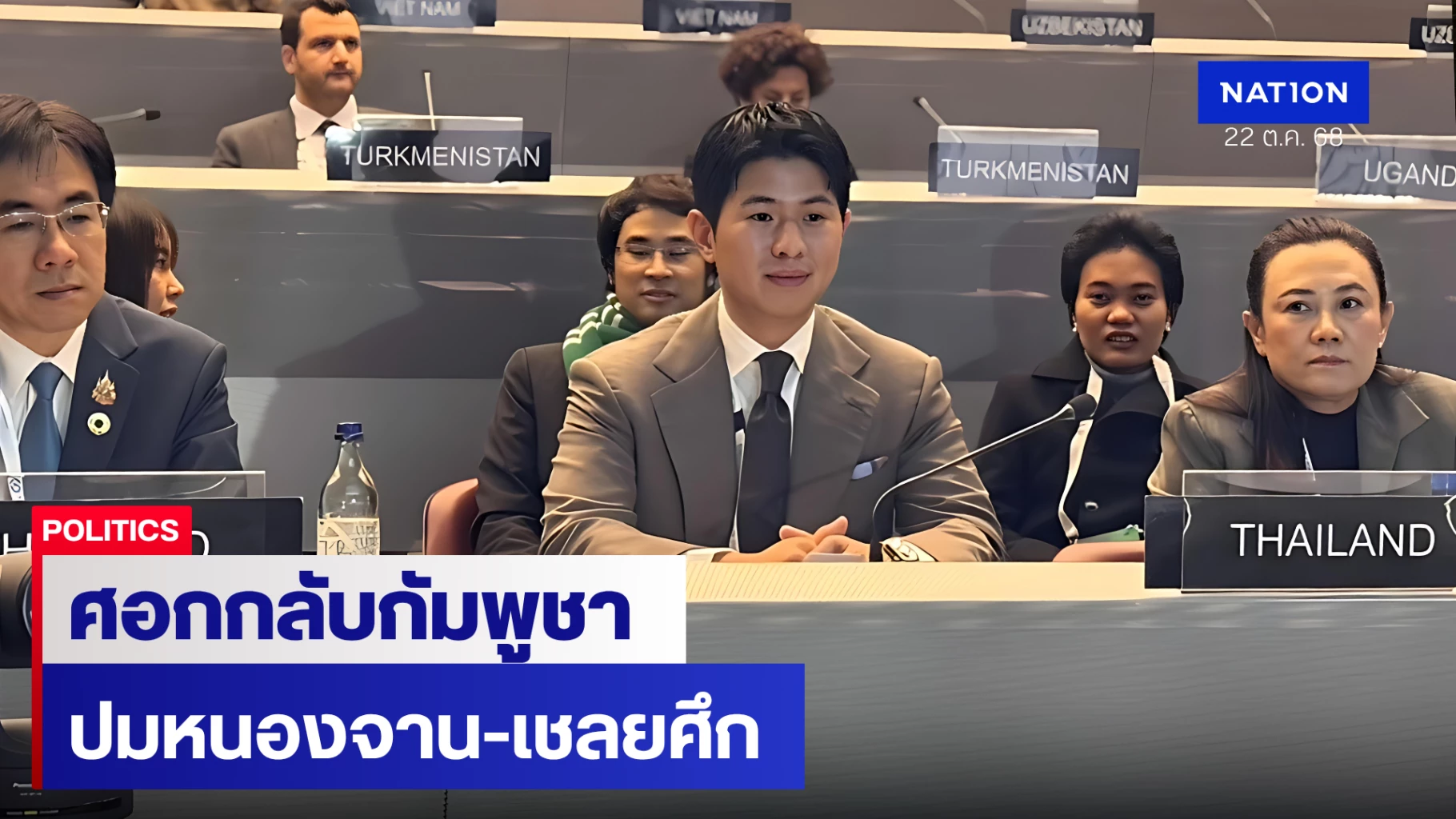 สส.จากประเทศไทย อธิบายว่า ข้อพิพาทชายแดนด้านตะวันออกของไทยไม่ใช่เรื่องดินแดน เป็นเรื่องของความไว้วางใจ และความเป็นมนุษย์ ขอย้ำว่าไทยเคารพอธิปไตย มุ่งมั่นอย่างเต็มที่ต่อข้อตกลงหยุดยิง และเชื่อมั่นว่าสันติภาพคือหลักฐานของความก้าวหน้าทั้งปวง