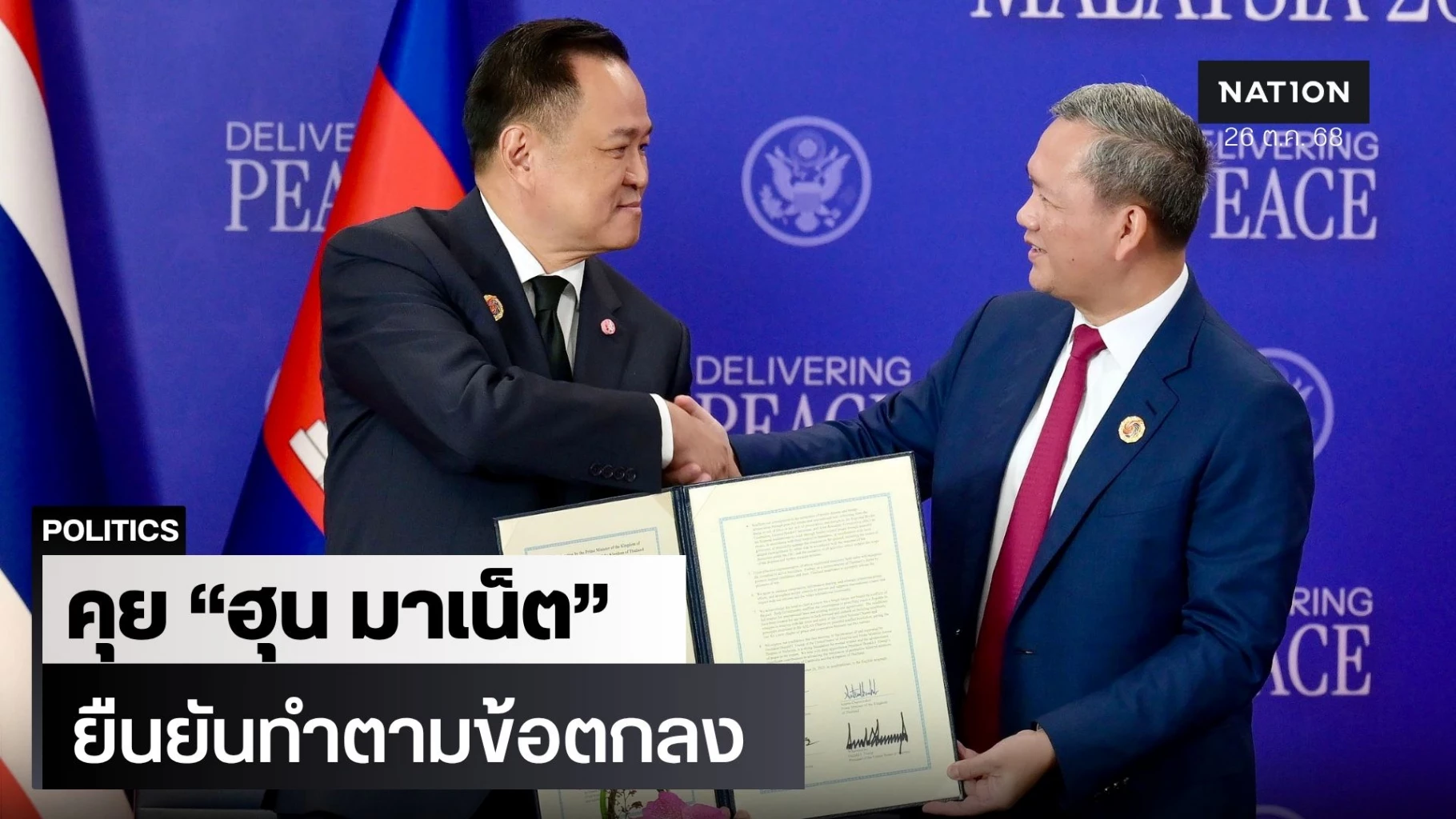 26 ตุลาคม 2568 เวลา 13.20 น. (ตามเวลาท้องถิ่นกรุงกัวลาลัมเปอร์ ซึ่งเร็วกว่ากรุงเทพฯ 1 ชม.) นายอนุทิน ชาญวีรกูล นายกรัฐมนตรี และรัฐมนตรีว่าการกระทรวงมหาดไทย ให้สัมภาษณ์สื่อโทรทัศน์รวมการเฉพาะกิจ ภายหลังการลงนามถ้อยแถลงข้อตกลงผลการพบหารือระหว่างนายกรัฐมนตรีราชอาณาจักรไทย และนายฮุน มาเนต นายกรัฐมนตรีราชอาณาจักรกัมพูชา ณ กรุงกัวลาลัมเปอร์ มาเลเซีย ในการประชุมสุดยอดอาเซียน โดย นายสิริพงศ์ อังคสกุลเกียรติ โฆษกประจำสำนักนายกรัฐมนตรี สรุปสาระสำคัญดังนี้