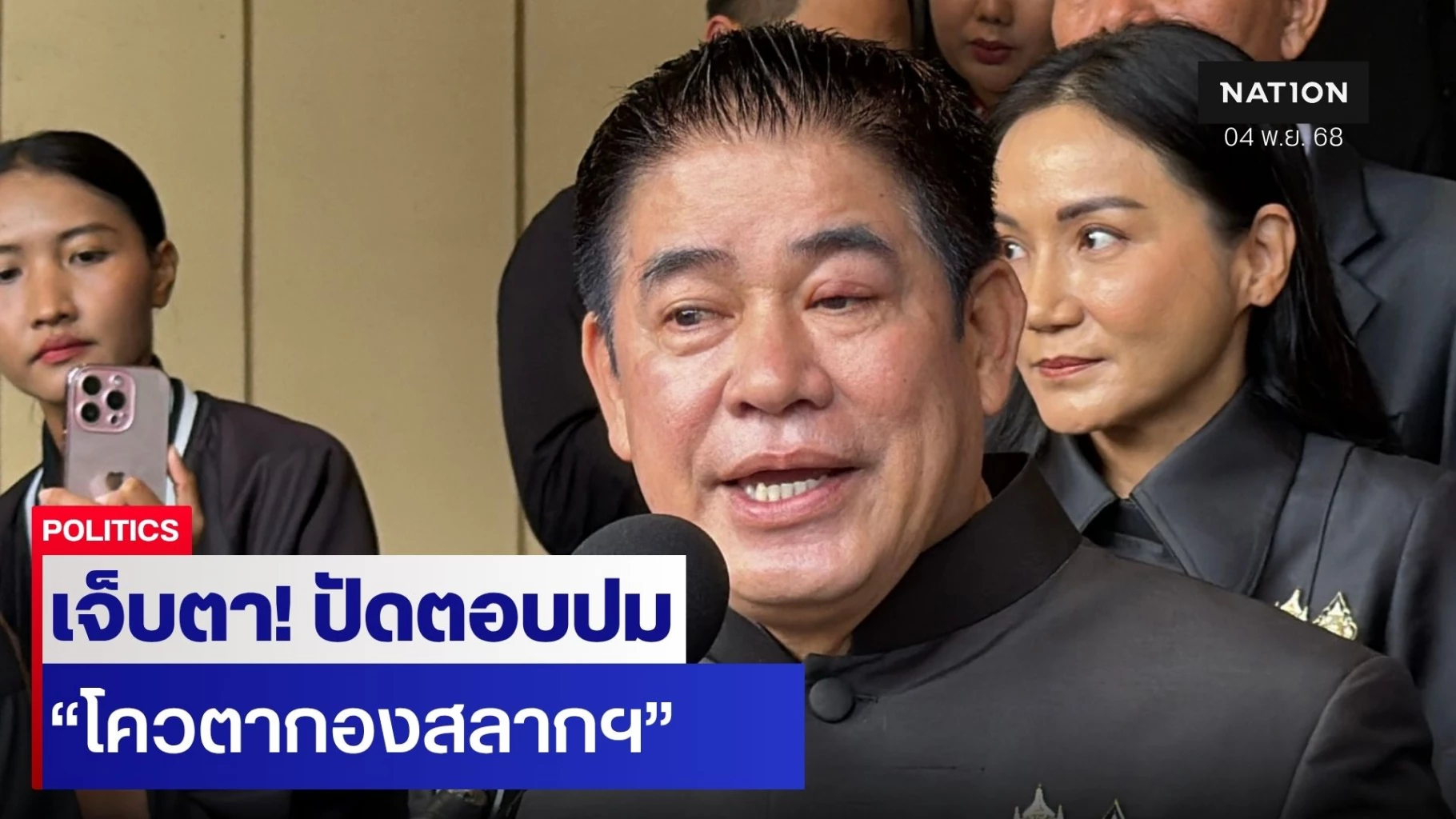 วันนี้เจ็บตา พูดไม่ได้ พร้อมถามว่าทำไมมีจังหวะพอดีที่จะถามตนตลอด ก่อนจะระบุว่าในเรื่องโควตากองสลากตั้งแต่รัฐประหารปี 2557