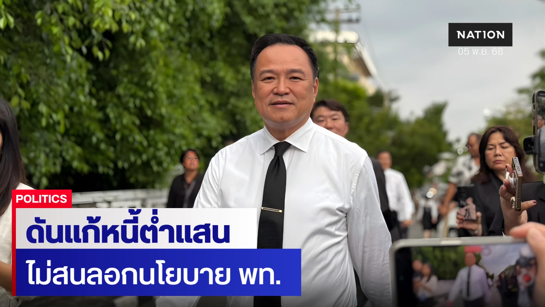 นอกจากนี้ ยังกล่าวถึงนโยบายแก้หนี้ครัวเรือนที่ นายเอกนิติ นิติทัณฑ์ประภาศ รัฐมนตรีว่าการกระทรวงการคลัง กำลังเร่งผลักดัน ได้แก่ โครงการปรับโครงสร้างหนี้ไม่เกิน 100,000 บาทต่อราย สำหรับประชาชนรายย่อย โดยระบุว่า เรื่องนี้สำคัญมากสำหรับคนหาเช้ากินค่ำ รัฐบาลจะทำให้เห็นผลเป็นรูปธรรม