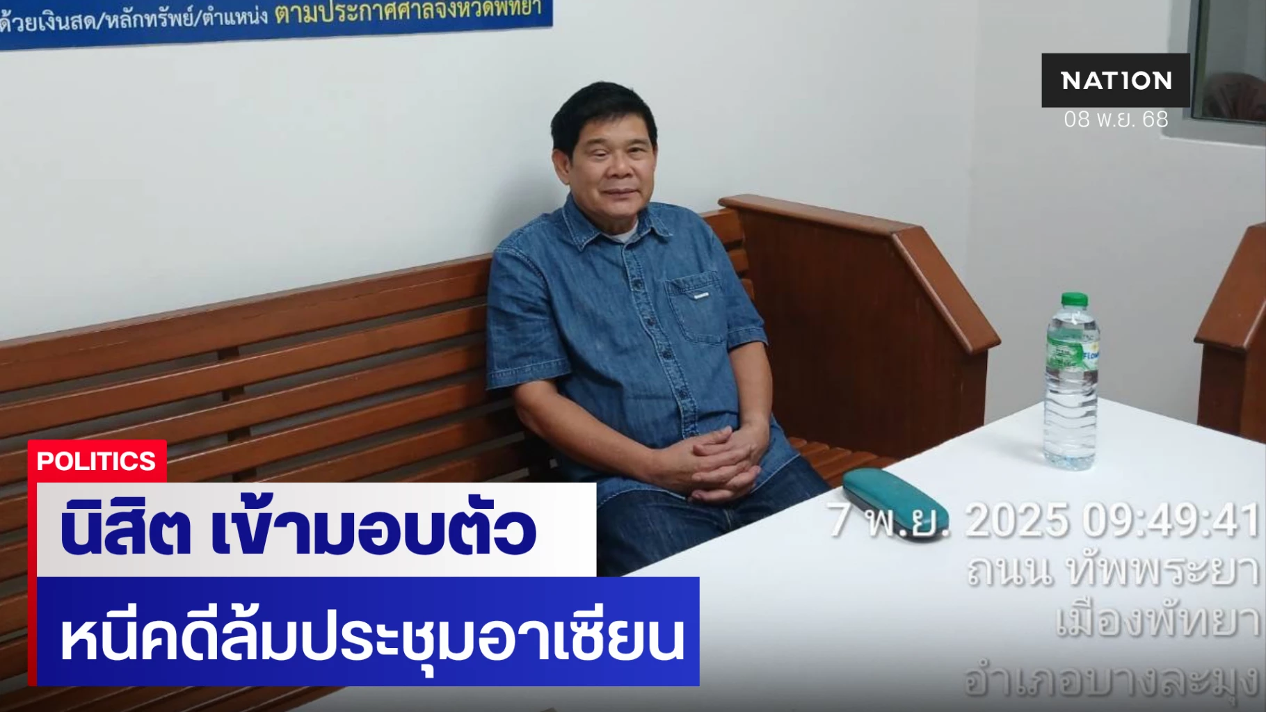 8 พฤศจิกายน 2568 มีรายงานว่า เมื่อวันที่ 6 พ.ย. ที่ผ่านมา นายนิสิต สินธุไพร อดีตสมาชิกสภาผู้แทนราษฎรจังหวัดร้อยเอ็ด และอดีตแกนนำแนวร่วมประชาธิปไตยต่อต้านเผด็จการแห่งชาติ (นปช.) ได้ประสานติดต่อมายังเจ้าหน้าที่ตำรวจ กก.3 บก.ป. เพื่อขอเข้ามอบตัว หลังตกเป็นผู้ต้องหาตามหมายจับศาลจังหวัดพัทยา ที่ 618/2562 ลงวันที่ 1 พ.ย. 2562 ข้อหา “ก่อความวุ่นวายในบ้านเมือง ,ทำให้เสียทรัพย์ และบุกรุก” เพื่อขอต่อสู้คดี โดยเดินทางมามอบตัวที่ บริเวณป้อมตำรวจทางหลวง อ.สุวรรณภูมิ จ.ร้อยเอ็ด