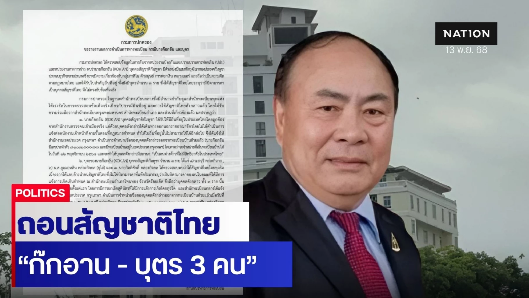 จึงได้แจ้งให้สำนักงานเขตประเวศ กรุงเทพฯ ดำเนินการจำหน่ายชื่อของบุคคลดังกล่าวออกจากทะเบียนบ้านด้วยแล้ว (นายก๊ก อาน มีเลขประจำตัว8-1032-xxxxx- และมีทะเบียนบ้านอยู่ในเขตประเวศ กรุงเทพฯ) โดยคาดว่าจะจำหน่ายชื่อในทะเบียนบ้านได้ ในวันที่ 12 พฤศจิกายน 2568 และจะทำให้บุคคลดังกล่าวมีสถานะ "เป็นคนต่างด้าวที่ไม่มีสิทธิอาศัยในประเทศไทย"