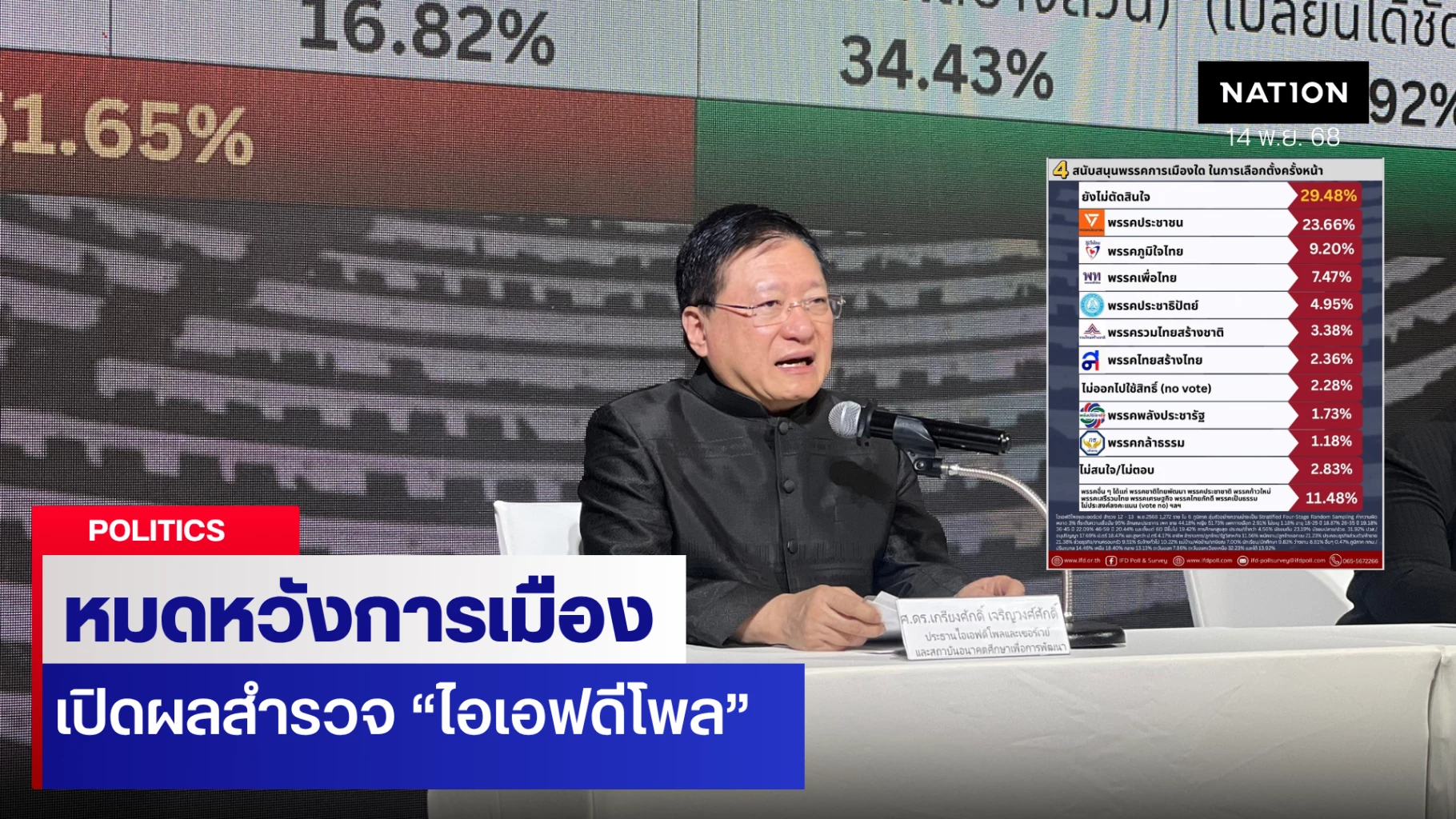 14 พฤศจิกายน 2568 ศ.ดร.เกรียงศักดิ์ เจริญวงศ์ศักดิ์ (ดร.แดน) ประธานสถาบันการสร้างชาติ ประธานสถาบันอนาคตศึกษาเพื่อการพัฒนา และนางจิตติมา บุญวิทยา ผู้อำนวยการไอเอฟดีโพลและเซอร์เวย์ ร่วมแถลงผลการสำรวจความคิดเห็นประชาชนไทยตั้งแต่ 18 ปีขึ้นไป เรื่อง “คนไทย 50% หมดหวังการเมือง–เลือกตั้งหน้าเสี่ยงวนเดิม 38% หนุนอภิปรายไม่ไว้วางใจนายกฯ” 1,272 ตัวอย่าง สำรวจ 12 - 13 พ.ย. 2568 ใน 6 ภูมิภาค โดยการลงภาคสนามและการโทรศัพท์ สุ่มตัวอย่างความน่าจะเป็น Stratified Four-Stage Random Sampling ค่าความผิดพลาด 3% ที่ระดับความเชื่อมั่น 95%