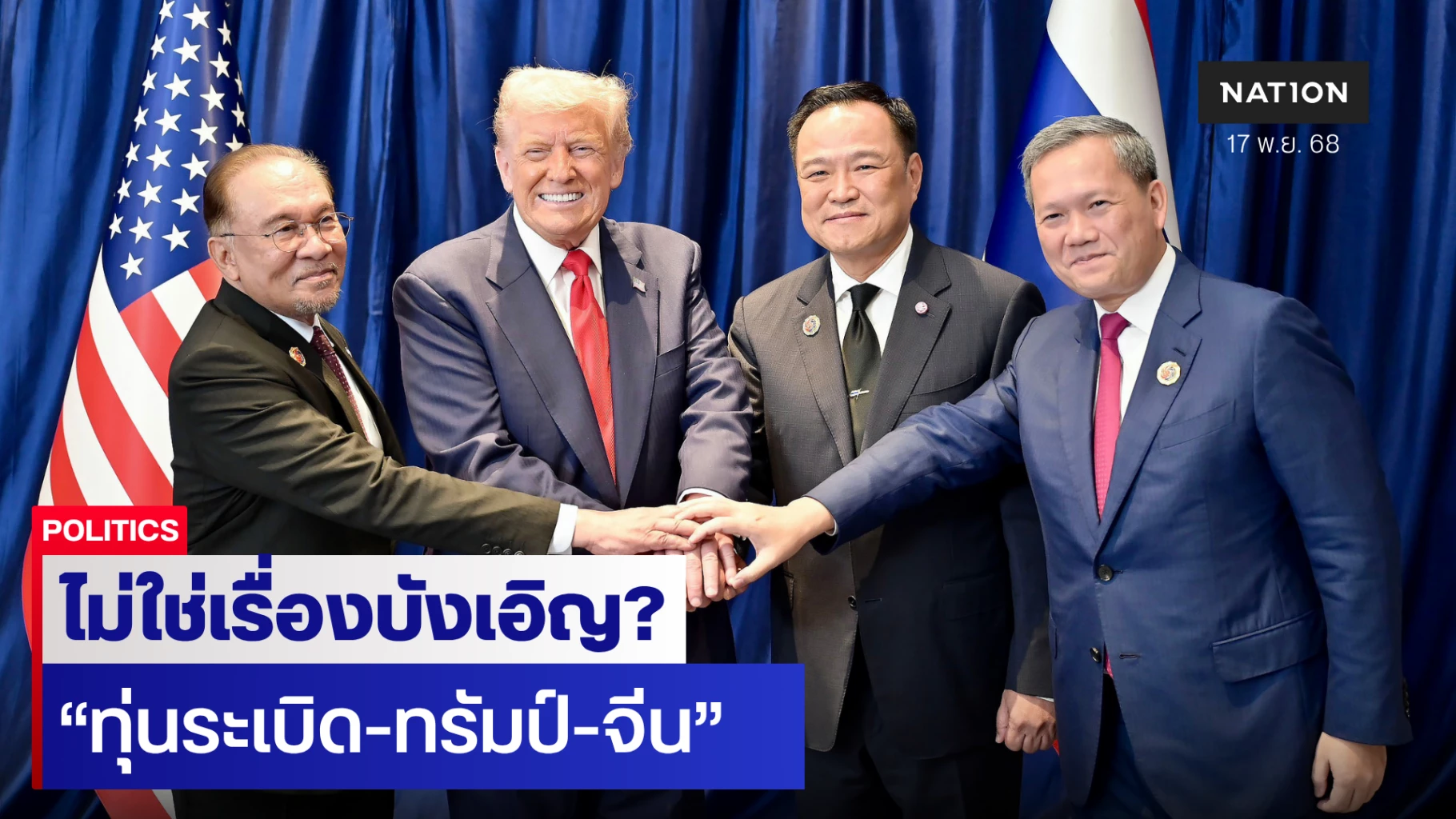 และล่าสุดที่โฆษกรัฐบาล คุณสิริพงศ์ อังคะสกุลเกียรติ ออกมาอ้างข้อมูลการติดต่อประสานงานของ นายกฯอันวาร์ อิบราฮิม ที่นำข้อความจากประธานาธิบดี “ทรัมป์“ มาแจ้งกับนายกฯอนุทินว่า สหรัฐฯจะไม่นำเรื่องเจรจาด้านภาษีมาเกี่ยวข้องกับการระงับปฏิญญาร่วมไทย-กัมพูชาของฝ่ายไทย หากเป็นแบบนี้ การเจรจาก็จะเดินหน้าต่อไป และกำลังจะมีการนัดเจรจากันรอบใหม่ในเร็ววันนี้