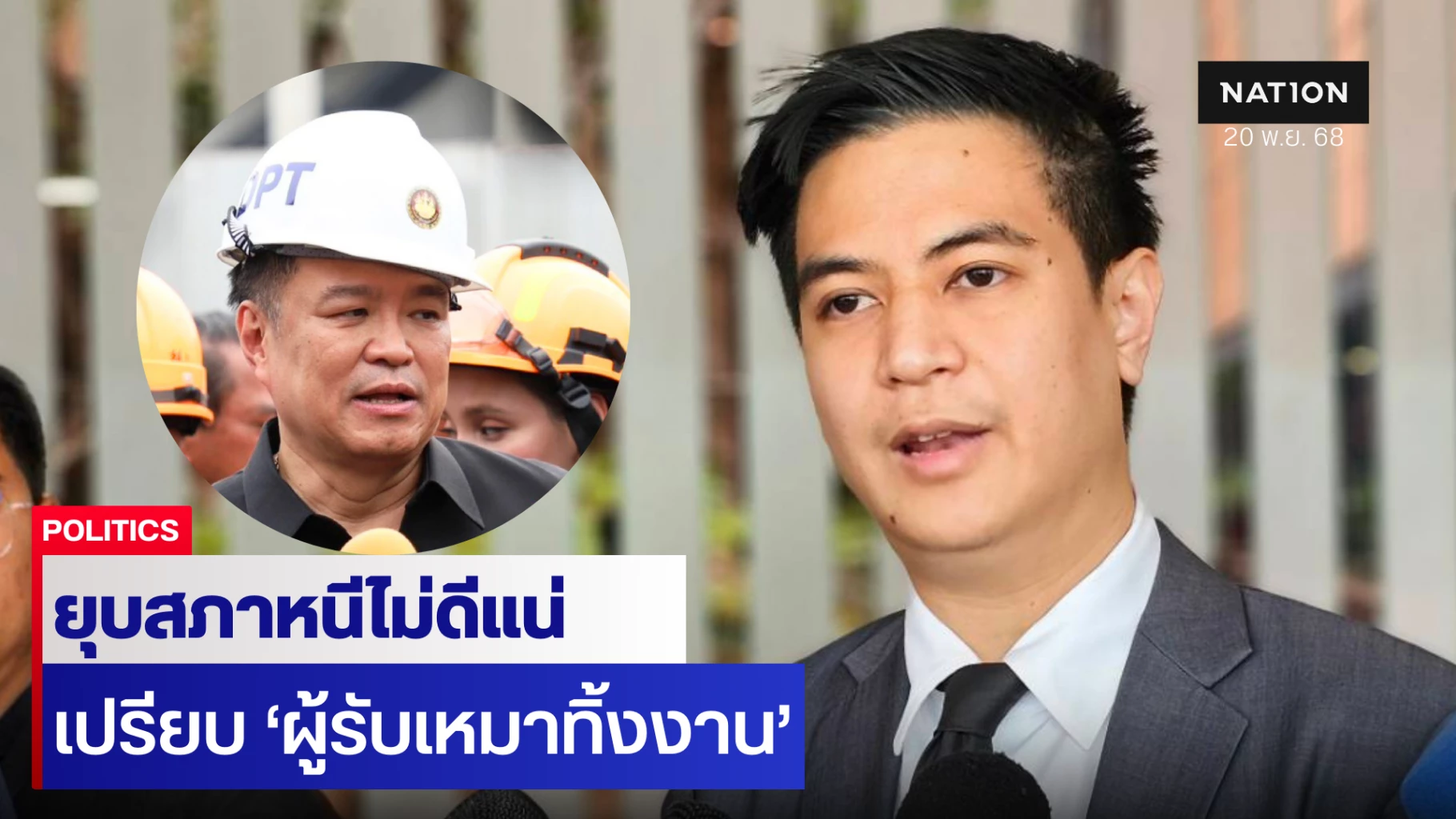 นายพริษฐ์ วัชรสินธุ สส.บัญชีรายชื่อ พรรคประชาชน ในฐานะโฆษกพรรคฯ กล่าวถึงกรณีที่นายอนุทิน ชาญวีรกูล นายกรัฐมนตรีและรัฐมนตรีว่าการกระทรวงมหาดไทย ขู่ยุบสภาฯ วันที่ 12 ธันวาคมนี้ หากฝ่ายค้านยื่นอภิปรายไม่ไว้วางใจ ซึ่งอาจจะทำให้การแก้ไขรัฐธรรมนูญได้รับผลกระทบไปด้วยว่า หากนายกรัฐมนตรี จะยุบสภาเพื่อหลีกหนีการตรวจสอบ หรือปัดความรับผิดชอบเรื่องรัฐธรรมนูญ ก็ไม่ต่างอะไรกับ “ผู้รับเหมาที่ทิ้งงาน” หรือ “ปิดกิจการ” เพื่อหนีการตรวจสอบ แม้เวลานี้ยังถกเถียงในเชิงข้อกฎหมายว่า เมื่อยื่นอภิปรายแล้ว นายกรัฐมนตรีจะยุบสภาทันทีได้หรือไม่ ซึ่งตนคิดว่า เจตนารมณ์ของรัฐธรรมนูญ ก็เขียนไว้ชัดว่า ไม่ต้องการให้นายกรัฐมนตรี ใช้อำนาจยุบสภา เพื่อหนีการตรวจสอบ และตนคิดว่า หากนายกรัฐมนตรี ตัดสินใจยุบสภา ก็ย่อมไม่ส่งผลดีต่อมุมมองของประชาชนที่มีต่อนายกรัฐมนตรีในเชิงการเมือง และโดยเฉพาะในสนามเลือกตั้งที่จะมาถึง