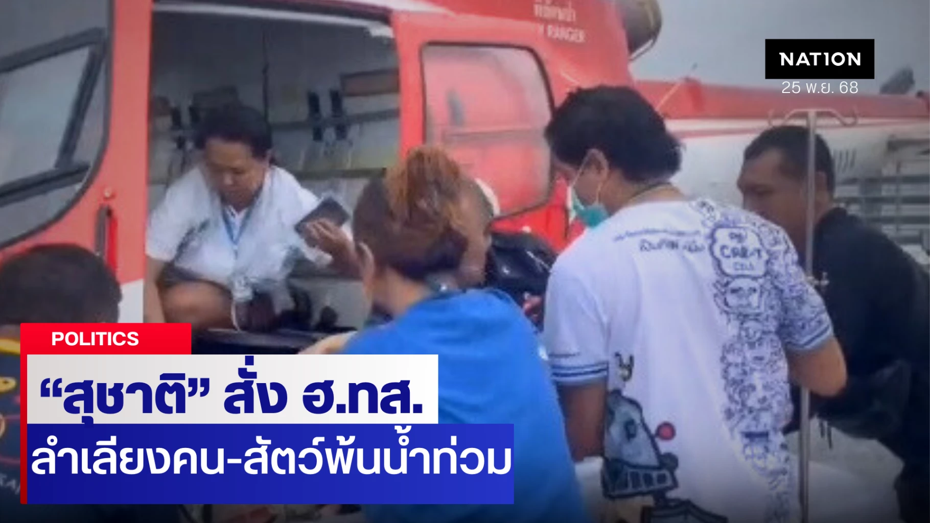 "สุชาติ" สั่งด่วน! ฮ.ทส.–กรมอุทยานฯ ระดมช่วยน้ำท่วม คน-สัตว์ -ผู้ป่วยฉุกเฉิน