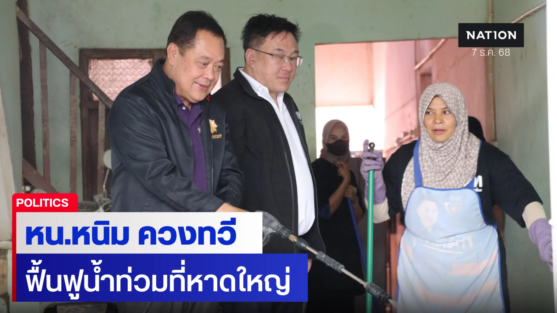 7 ธันวาคม 2568 ที่ชุมชนโคกสมาน อ.หาดใหญ่ จ.สงขลา พรรคเพื่อไทย นำทีมโดย นายจุลพันธ์ อมรวิวัฒน์ หัวหน้าพรรค พร้อมคณะกรรมการบริหารพรรค, สส.และสมาชิกพรรค ตัวแทนผู้เข้าร่วมโครงการของพรรค จับมือ พ.ต.อ.ทวี สอดส่อง หัวหน้าพรรคประชาชาติ พื้นที่เพื่อติดตามสถานการณ์ ฟื้นฟูพื้นที่ที่ได้รับผลกระทบจากน้ำท่วมหาดใหญ่ พร้อมให้กำลังใจผู้ประสบภัย และอาสาสมัครที่เข้ามาช่วยเหลือประชาชน