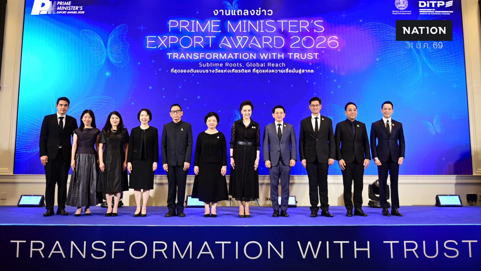 ด้านนางสาวสุนันทา กังวาลกุลกิจ อธิบดีกรมส่งเสริมการค้าระหว่างประเทศ กล่าวว่า Prime Minister’s Export Award เป็นรางวัลที่จัดขึ้นอย่างต่อเนื่องมากว่า 33 ปี เพื่อเชิดชูเกียรติผู้ประกอบการไทยที่มีความเป็นเลิศในด้านคุณภาพสินค้าและบริการ การสร้างแบรนด์ นวัตกรรม และความยั่งยืน โดยในปี 2569 จัดภายใต้แนวคิด “Transformation with Trust : Sublime Roots, Global Reach” เพื่อสะท้อนการพัฒนาและการปรับตัวของผู้ประกอบการไทยท่ามกลางความผันผวนของเศรษฐกิจโลก และการสร้างความเชื่อมั่นให้แก่แบรนด์ประเทศไทย