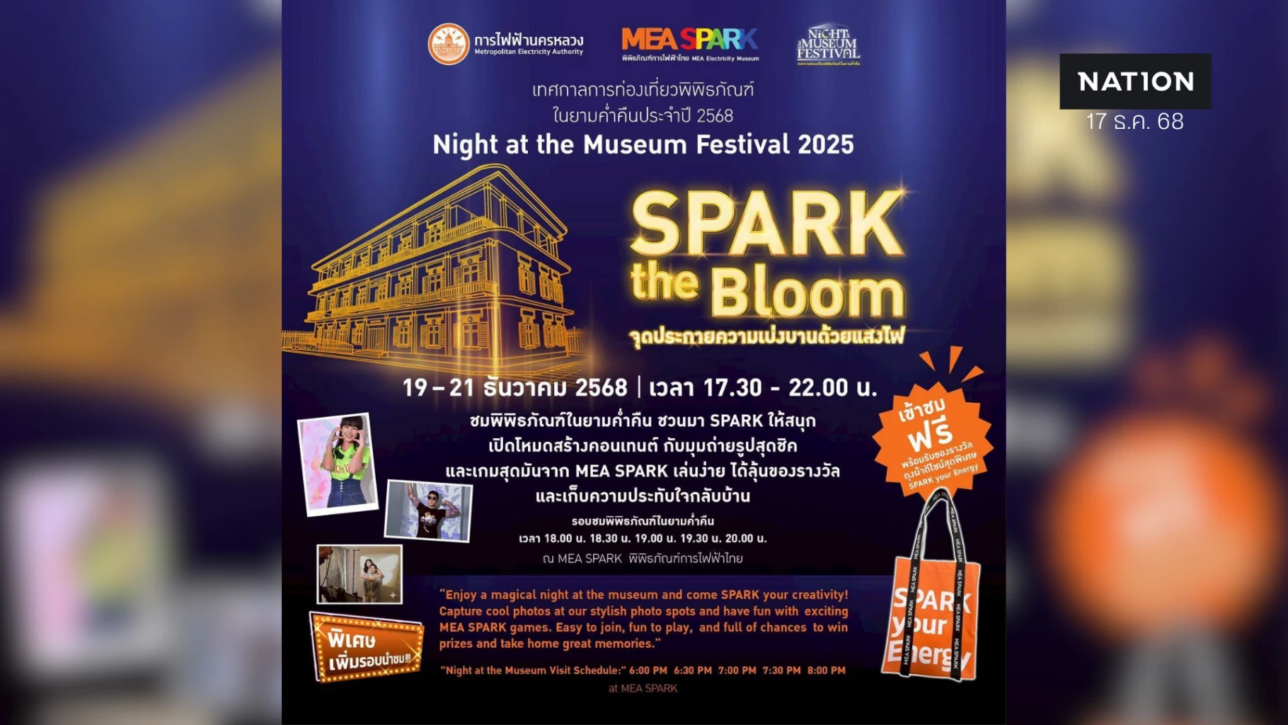 งานดี ๆ ที่ไม่อยากให้พลาด เพียง 3 วันเท่านั้น ที่คุณจะได้มีโอกาสเที่ยว MEA SPARKพิพิธภัณฑ์การไฟฟ้าไทย ในยามค่ำคืน