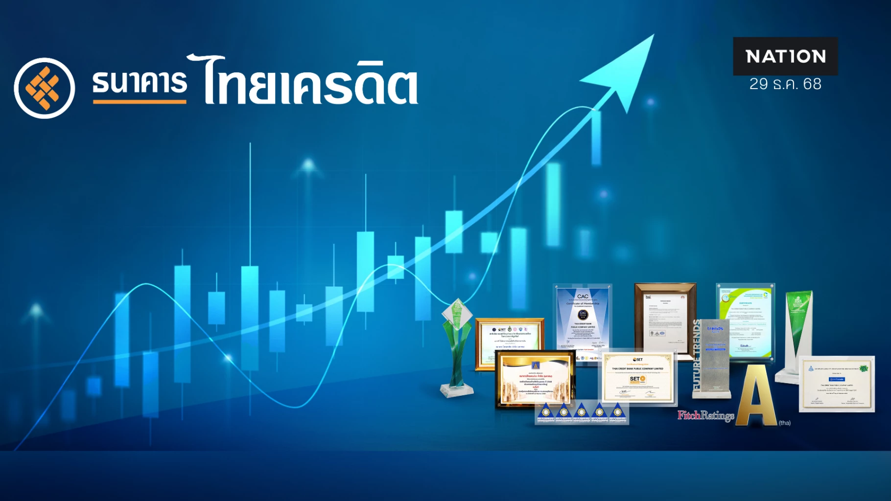 จากผลของการดำเนินงาน ความมุ่งมั่น ในการส่งมอบโซลูชั่นทางการเงินและบริการที่เป็นเลิศแก่ลูกค้าและสังคม ส่งผลให้ธนาคารได้รับการยอมรับผ่านรางวัลและมาตรฐานสำคัญต่างๆ ทั้งในระดับประเทศและระดับสากล ครอบคลุมในหลายมิติ อาทิ ด้านธุรกิจและการเงิน ได้รับการจัดอันดับเครดิตองค์กรที่ระดับ 'A(tha)/F1 (tha)' โดย Fitch Ratings และติดติดอันดับ Fortune Southeast Asia 500 ต่อเนื่องปีที่ 2 โดย นิตยสาร Fortune, ด้านการกำกับดูแลกิจการ ผ่านการรับรองสมาชิกของแนวร่วมต่อต้านคอร์รัปชันของภาคเอกชนไทย โดย Thai CAC และได้รับผลการประเมินการกำกับดูแลกิจการ ระดับ 5 ดาว ต่อเนื่องปีที่ 2 โดย สมาคมส่งเสริมสถาบันกรรมการบริษัทไทย (IOD) ร่วมกับ ตลท. และ ก.ล.ต. ด้านการส่งเสริมสังคมและสิทธิมนุษยชน ได้รับรางวัลโครงการรณรงค์สร้างวินัยทางการเงิน ต่อเนื่องเป็นปีที่ 2 และ รางวัลองค์กรต้นแบบสิทธิมนุษยชน ตลอดจนด้านสิ่งแวดล้อม ได้รับรางวัล Leading ESG Award จากเวที Future Trends 2025, ผ่านการรับรองมาตรฐาน ISO 14064-1 โดย BSI, ได้รับการรับรองคาร์บอนฟุตพริ้นท์ขององค์กร (CFO) และ SET ESG Ratings ระดับ “A”จากตลาดหลักทรัพย์แห่งประเทศไทย เป็นปีแรก