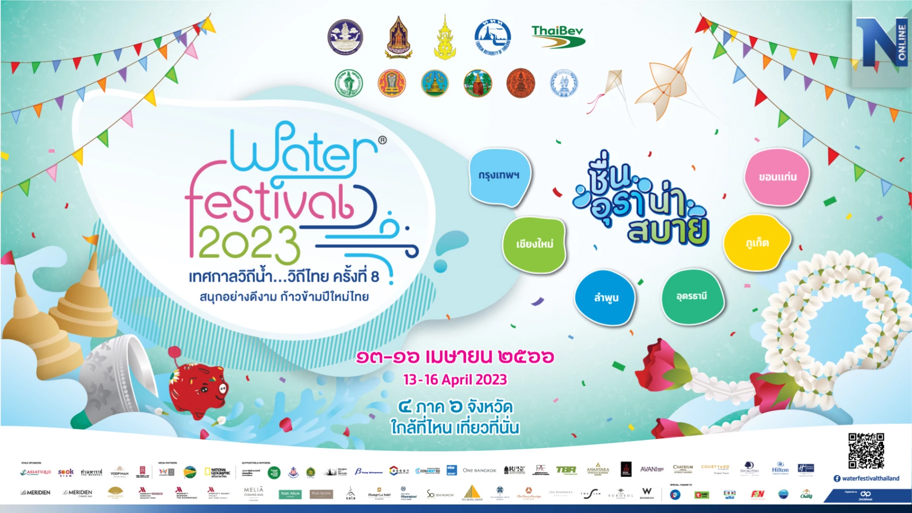 ร่วมสืบสานประเพณี และอัตลักษณ์ทางวัฒนธรรมอันทรงคุณค่า พร้อม “บอกเล่าความเป็นไทยไปทั่วโลก” กับเทศกาล “Water Festival 2023 เทศกาลวิถีน้ำ…วิถีไทย” ครั้งที่ 8 สนุกอย่างดีงาม ก้าวข้ามปีใหม่ไทย “ชื่นอุรา น่าสบาย” ไปพร้อมกัน ระหว่างวันที่ 13-16 เมษายน นี้ ติดตามความเคลื่อนไหวได้ที่ Facebook: Water Festival Thailand