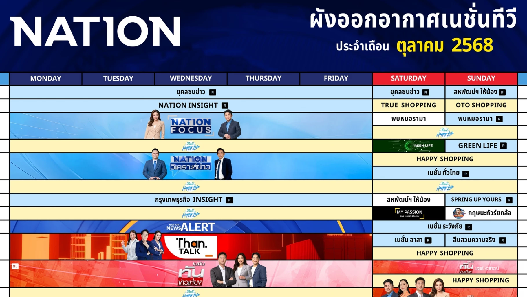 ผังออกอากาศเนชั่นทีวี ประจำเดือน ตุลาคม 2568 (อัปเดต 6 ตุลาคม)