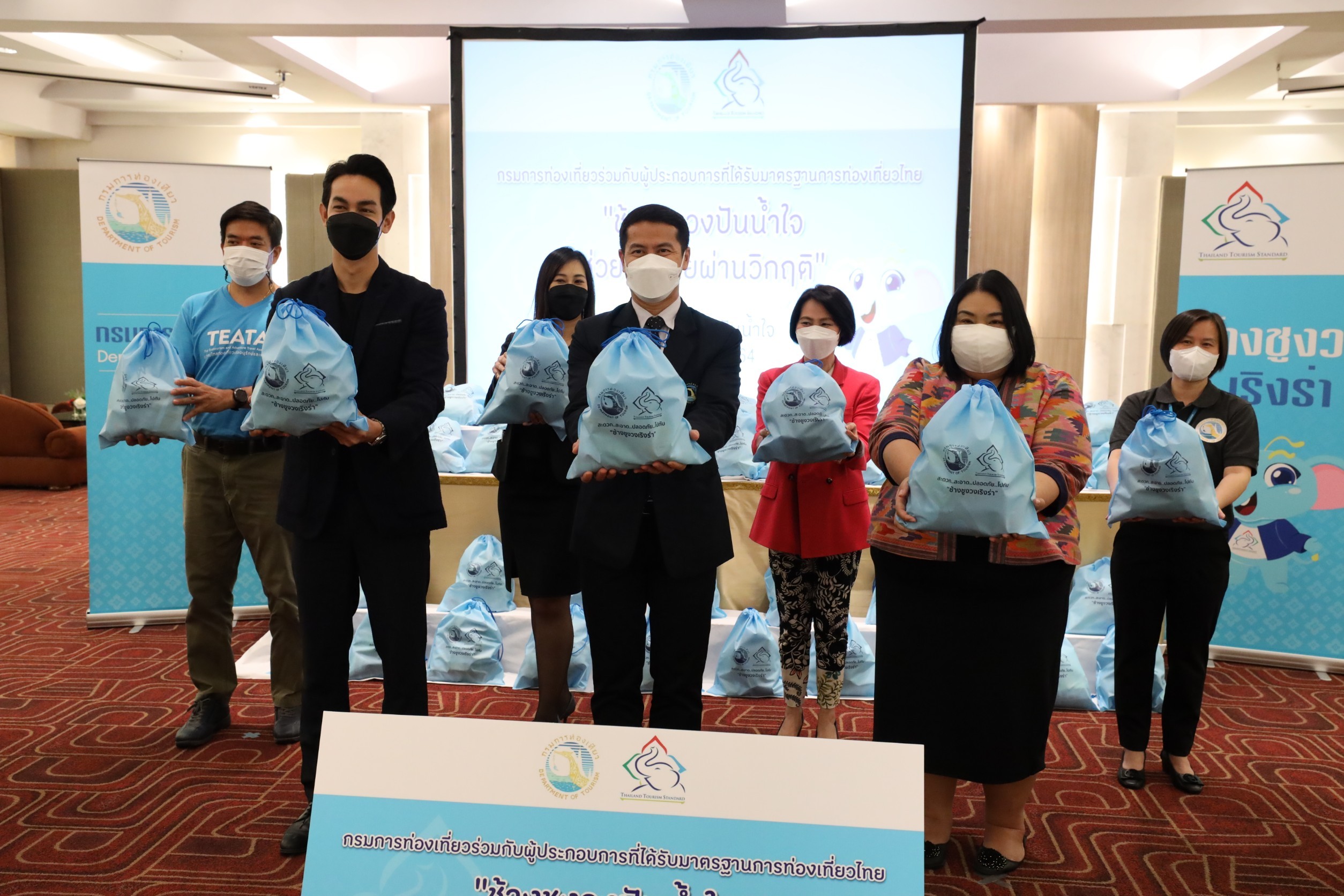 ขณะนี้ ประเทศไทยกำลังประสบปัญหาที่กระทบกับภาพรวมการท่องเที่ยว ทั้งสถานการณ์การแพร่ระบาดของโรคโควิด -19 ที่ถึงแม้ว่าจะมีทิศทางที่ดีขึ้น แต่ก็สร้างภาระที่หนักหน่วงให้กับบุคลากรทางการแพทย์ ตลอดจนส่งผลให้ภาคการท่องเที่ยวชะลอตัว อีกทั้ง ยังตามมาด้วยสถานการณ์น้ำท่วมในหลายพื้นที่ของประเทศ ซึ่งสร้างความเดือดร้อนให้กับประชาชนเป็นวงกว้าง ส่งผลให้กรมการท่องเที่ยว ได้ร่วมมือกับผู้ประกอบการท่องเที่ยวที่ได้รับมาตรฐานการท่องเที่ยวไทย สัญลักษณ์ช้างชูงวงเริงร่า จัดกิจกรรมเพื่อสังคม “ช้างชูงวงปันน้ำใจช่วยคนไทยผ่านวิกฤติ” โดยจัด 2 กิจกรรมสำคัญ คือ วันที่ 28 ตุลาคม 2564 ได้ประสานความร่วมมือไปยังกลุ่มผู้ประกอบการท่องเที่ยว ประกอบด้วย ตัวแทนผู้ประกอบการที่ได้รับมาตรฐานการท่องเที่ยวไทย และศิลปินนักแสดง กิก ดนัย จารุจินดา เพื่อร่วมกันแพคถุงปันน้ำใจ เตรียมมอบให้กับผู้ประสบอุทกภัยในพื้นที่ปริมณฑล และอีกกิจกรรมในวันที่ 1 พฤศจิกายน 2564 กิจกรรมลงพื้นที่สนับสนุนอาหารและเครื่องดื่มแก่บุคลากรทางการแพทย์ โรงพยาบาลธรรมศาสตร์เฉลิมพระเกียรติ และมอบถุงปันน้ำใจ เพื่อช่วยเหลือผู้ประสบอุทกภัยในพื้นที่เกาะเกร็ด จ.นนทบุรี ซึ่งจะเป็นการสร้างความร่วมมือเพื่อมอบขวัญกำลังใจให้คนไทยผ่านวิกฤตไปด้วยกัน และก้าวสู่ความพร้อมในการเปิดประเทศ เพื่อขับเคลื่อนภาคการท่องเที่ยว และเศรษฐกิจของประเทศให้กลับมาเป็นปกติอย่างมั่นคงในอนาคต