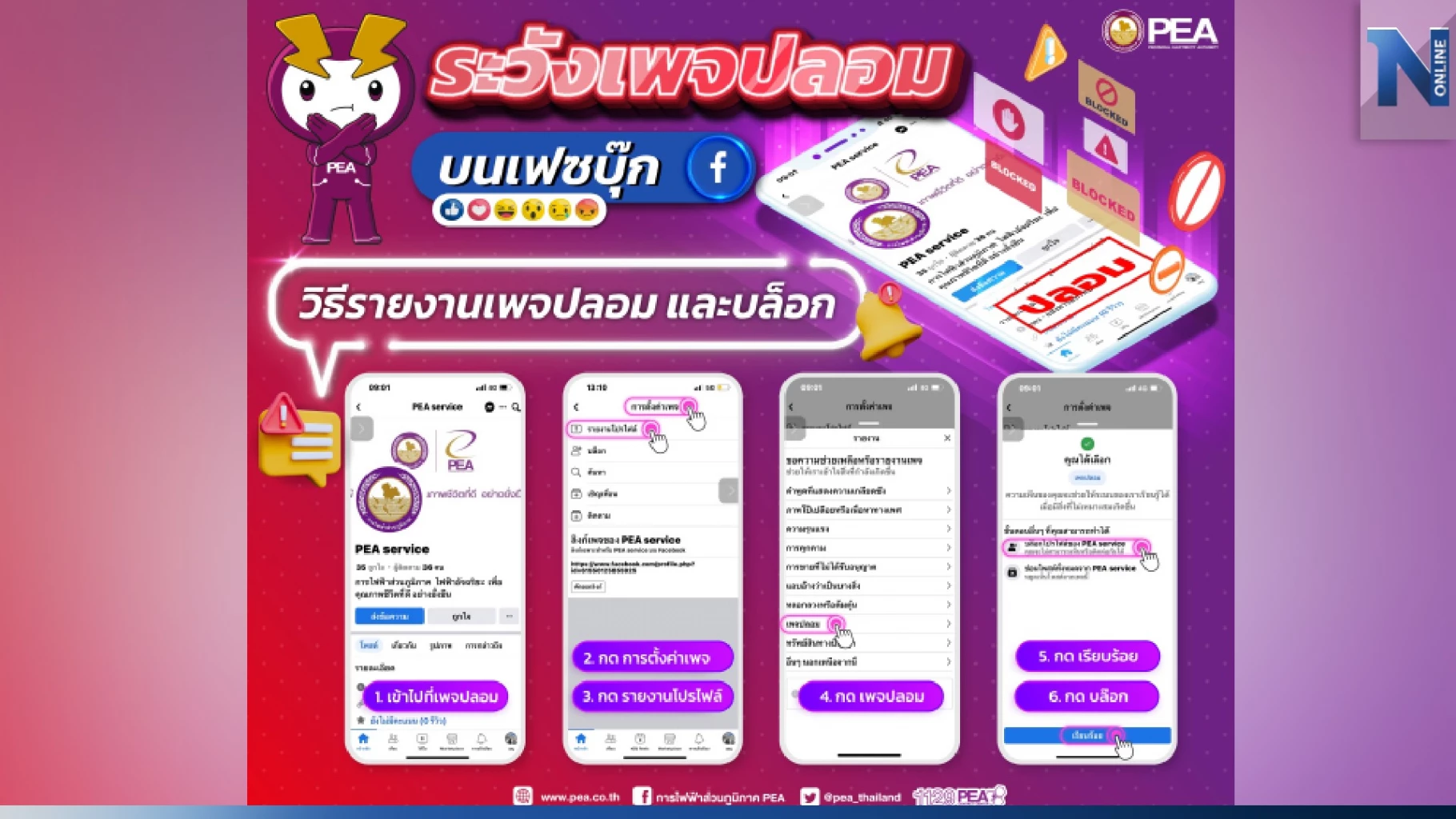 หากพบเห็น PEA มีวิธีการรายงานเพจปลอมและบล็อก ดังนี้