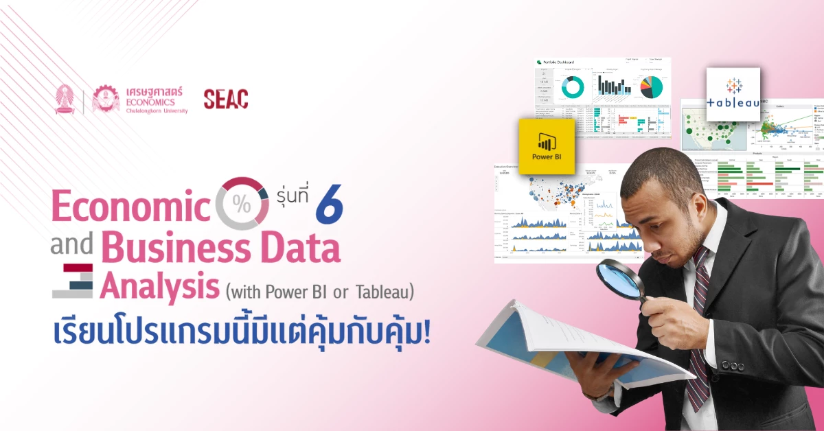 จากความสำเร็จในรุ่นที่ผ่านมา SEAC (ซีแอค) ผู้นำด้านการพัฒนาศักยภาพคนและองค์กร เดินหน้าต่อยอดความร่วมมือกับคณะเศรษฐศาสตร์ จุฬาลงกรณ์มหาวิทยาลัย จัดหลักสูตรประกาศนียบัตร Economic and Business Data Analysis (with Power BI or Tableau) รุ่นที่ 6 เพื่อมุ่งเสริมทักษะด้านการใช้ข้อมูล หรือ Data Skill ให้แก่ผู้บริหารและบุคลากรในองค์กร ที่ต้องการนำ Data มาวิเคราะห์รอบด้าน เพื่อต่อยอดแผนธุรกิจได้อย่างมีประสิทธิภาพ และนำพาองค์กรก้าวหน้าสู่อีกขั้น ด้วยหลักสูตรเข้มข้นในระยะเวลาเพียง 12 สัปดาห์ พร้อมรับใบประกาศนียบัตรรับรองการผ่านอมรมหลักสูตร 2 ฉบับจาก คณะเศรษฐศาสตร์ จุฬาลงกรณ์มหาวิทยาลัย ร่วมกับ SEAC และ SimpliLearn (เมื่อเข้าร่วมตามเงื่อนไขที่กำหนด)