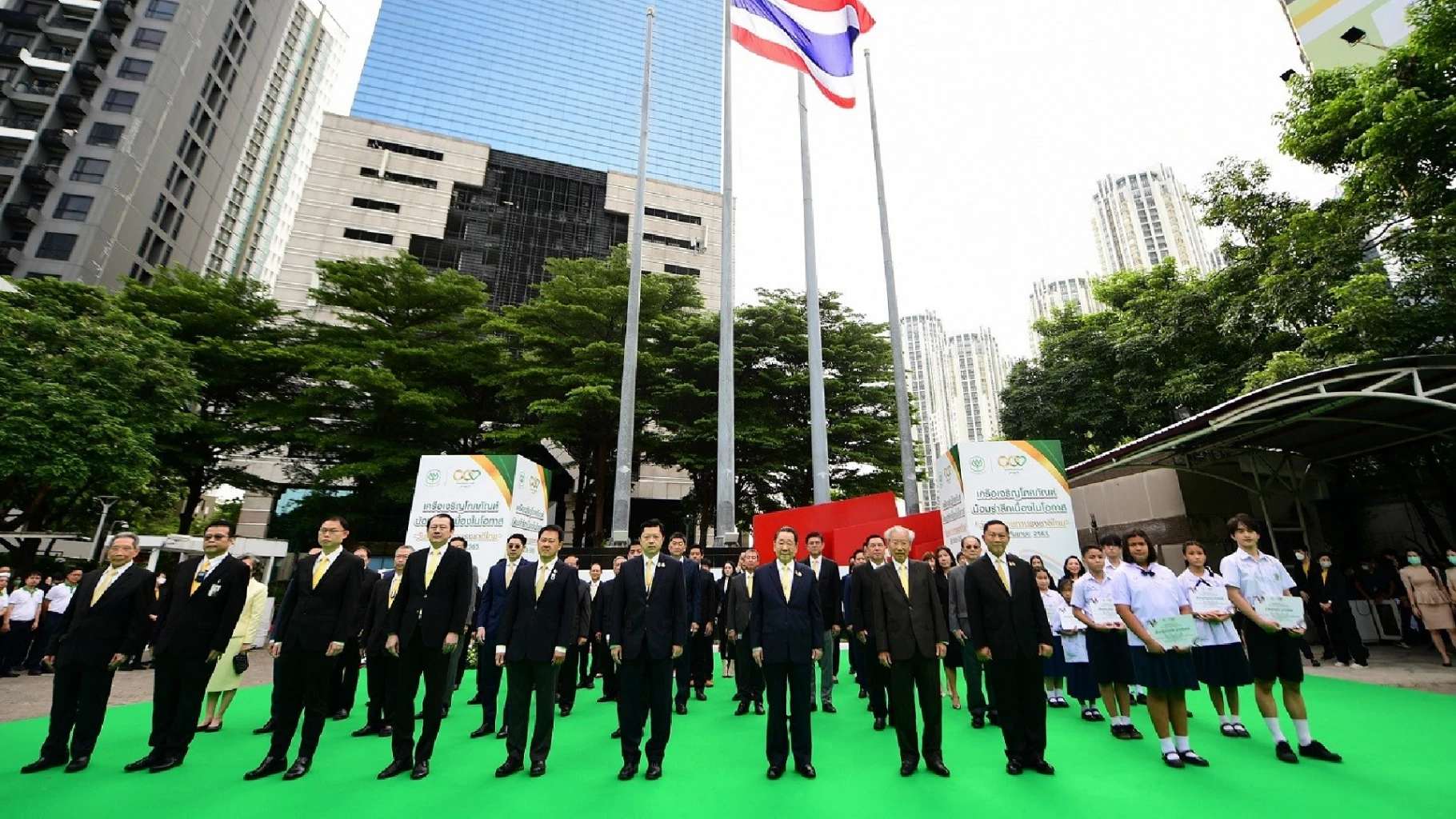 ซึ่งเป็น ศูนย์กลางในการจัดงาน และได้ถ่ายทอดสดไปยังอาคารสำนักงาน โรงงาน และกลุ่มธุรกิจในเครือกว่า 50 แห่งทั้งไทยและต่างประเทศ โดย นายศุภชัย เจียรวนนท์ ประธานคณะผู้บริหาร เครือซีพี ได้เป็นผู้นำในการกล่าวคำปฏิญานตนเพื่อเทิดทูนและรักษาไว้ซึ่งชาติ ศาสนา และพระมหากษัตริย์ จากนั้นได้ร่วมกันเคารพธงชาติและร้องเพลงชาติไทยพร้อมกัน เพื่อน้อมรำลึกในพระมหากรุณาธิคุณของพระบาทสมเด็จพระมงกุฎเกล้าเจ้าอยู่หัวที่ทรงพระราชทานธงไตรรงค์เป็นธงชาติไทย รวมถึงน้อมรำลึกถึงพระมหากรุณาธิคุณของพระมหากษัตริย์ทุกพระองค์ ตลอดจนความเสียสละของบรรพบุรุษไทยที่ทรงดำรงรักษาไว้ซึ่งเอกราชอธิปไตยให้ชาวไทยได้อยู่อย่างร่มเย็นตราบจนปัจจุบัน