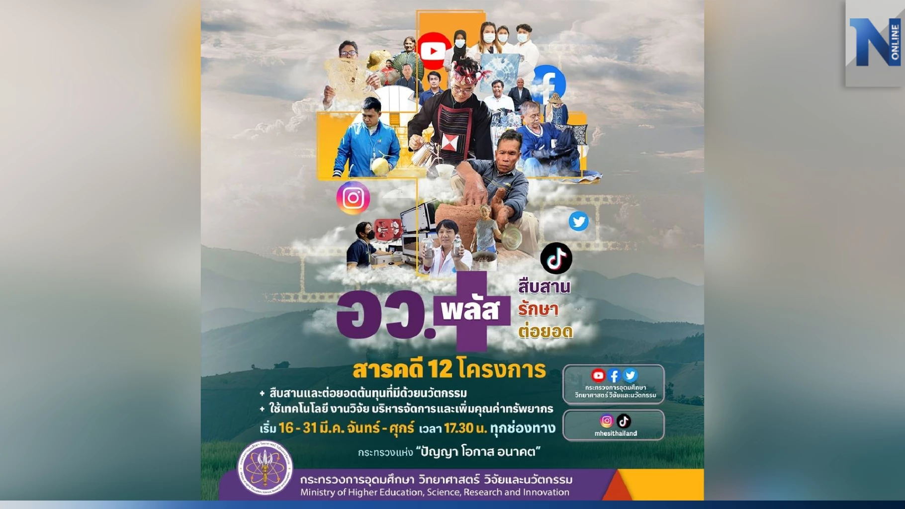 กระทรวงการอุดมศึกษา วิทยาศาสตร์ วิจัยและนวัตกรรม มีความมุ่งมั่นในการที่จะสืบสานพระราชปณิธาน พระบาทสมเด็จพระบรมชนกาธิเบศร มหาภูมิพลอดุลยเดชมหาราช บรมนาถบพิตร ที่จะสร้างประโยชน์สุขให้คนไทย โดยสานต่อโครงการในพระราชดำริ พัฒนาคนและเศรษฐกิจสู่ยุคไทยแลนด์ ๔.๐ โดยใช้นวัตกรรม เทคโนโลยี งานวิจัย มาบริหารจัดการทรัพยากรในแต่ละพื้นที่เพื่อเพิ่มมูลค่า สร้างความกินดี อยู่ดีให้กับประชาชน และได้จัดทำสารคดี ๑๒ โครงการ อว. พลัส สืบสาน รักษา ต่อยอด เพื่อเผยแพร่ให้แก่ประชาชนทั่วไปได้รับชมเพื่อเข้าใจแนวคิดการน้อมนำและสานต่อองค์ความรู้แห่งพระบิดาแห่งเทคโนโลยีของไทยและพระบิดาแห่งนวัตกรรมไทยให้ขยายไปในวงกว้างและเกิดการพัฒนาประเทศให้เจริญก้าวหน้าอย่างยั่งยืน