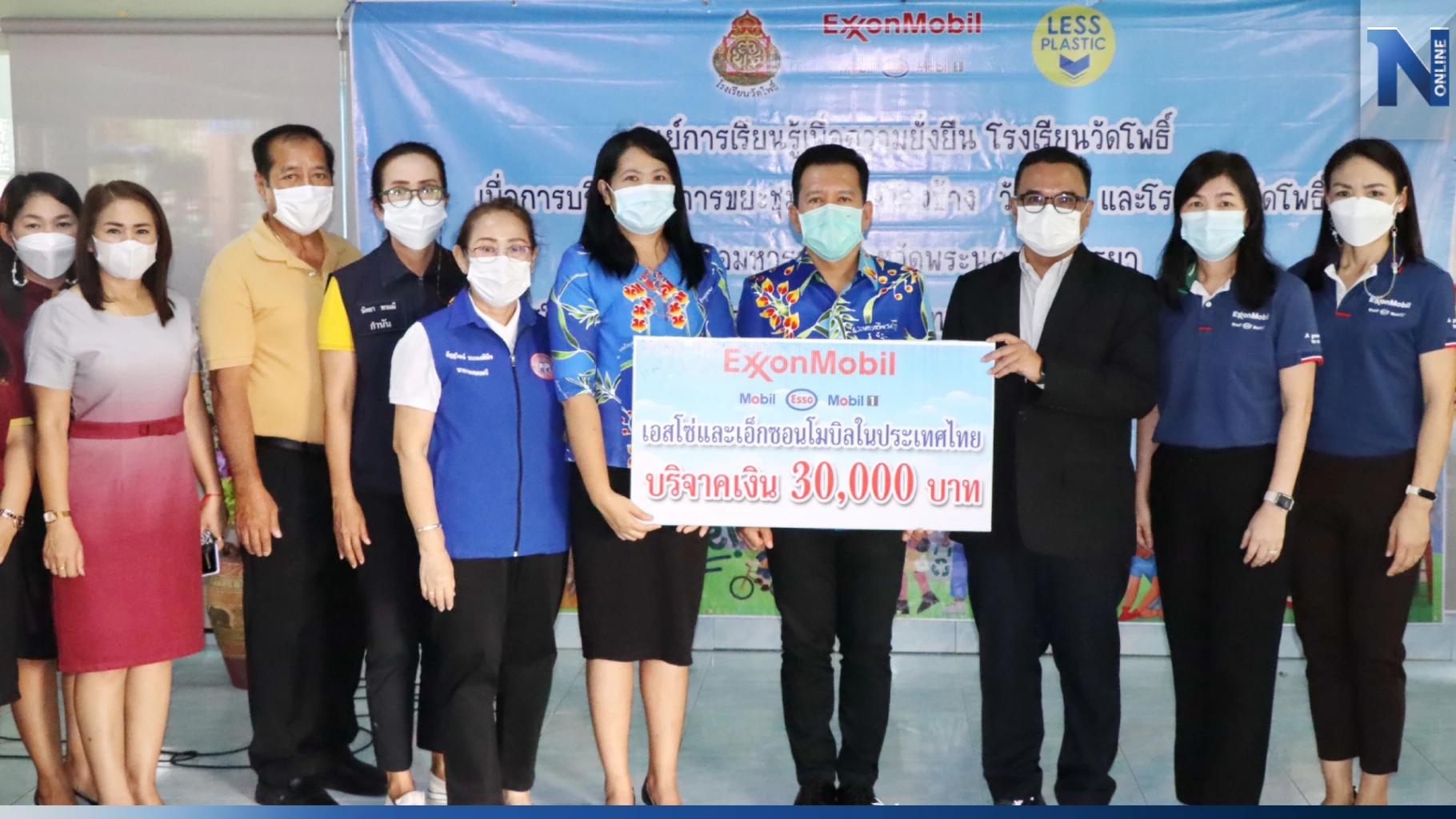 อยุธยา – ดร. ทวีศักดิ์ บรรลือสินธุ์ (ที่ 3 จากขวา) กรรมการ บริษัท เอสโซ่ฯ และผู้จัดการฝ่ายกิจกรรมองค์กรและรัฐกิจสัมพันธ์ บริษัทเอ็กซอนโมบิล จำกัด มอบเงินสนับสนุนจำนวน 30,000 บาท ให้แก่นางสาวศิริรัตน์ สุคันธพฤกษ์ (ที่ 6 จากซ้าย) รักษาการผู้อำนวยการโรงเรียนวัดโพธิ์ โดยมีนายสิรศักดิ์ ทัศยาพันธุ์ (ที่ 4 จากขวา) นายอำเภอมหาราช และนางอัฏฐวัฒน์ บรรจงพินิจ (ที่ 5 จากซ้าย) นายกเทศมนตรีตำบลโรงช้าง ร่วมในพิธี (จากภาพด้านบน)