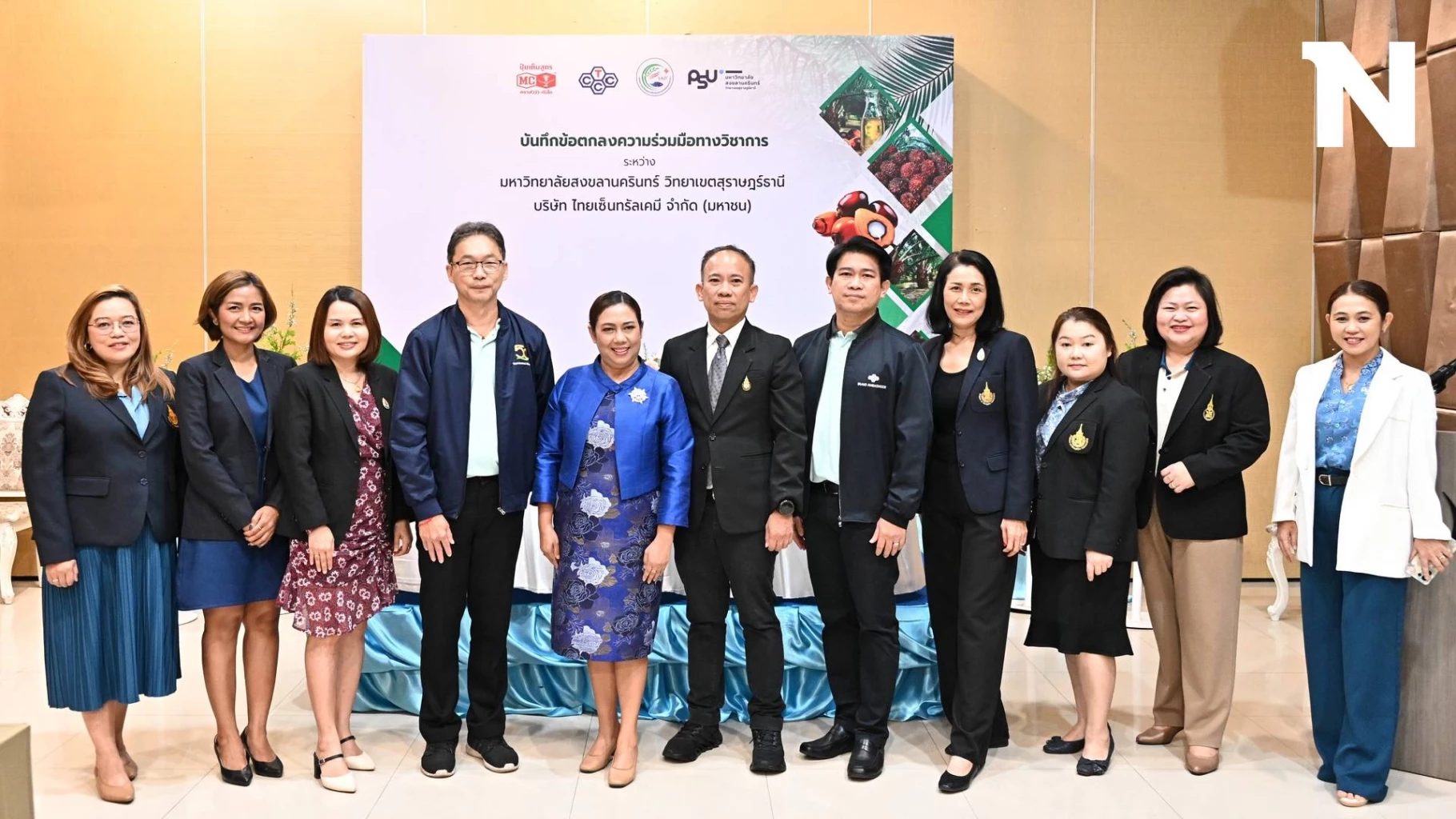 รองศาสตราจารย์สุชาดา ทิพย์มนตรี รองอธิการบดีวิทยาเขตสุราษฎร์ธานี กล่าวว่า ปัจจุบันมหาวิทยาลัยสงขลานครินทร์ มีภารกิจในการบริการวิชาการเชิงพื้นที่ทั้งในส่วนจังหวัดสุราษฎร์ธานี และทั้งภาคใต้ และทำงานร่วมกับจังหวัดสุราษฎร์ธานี ในการตอบโจทย์เชิงพื้นที่ด้านปาล์มน้ำมัน เช่น การพัฒนาเพื่อมุ่งสู่ Oil Palm City ของจังหวัด เพื่อแก้ไขปัญหาและยกระดับปาล์มน้ำมันและน้ำมันปาล์ม ตามแนวทาง สุราษฎร์ธานีโมเดล ทางมหาวิทยาลัยได้ร่วมผลักดันการเข้าสู่มาตรฐาน RSPO และการดำเนินการโอเลโอเคมีอย่างครบวงจรด้านปาล์มน้ำมัน ในภาคส่วนของมหาวิทยาลัยเรายังมีพื้นที่ที่ได้รับอนุญาตจากกรมป่าไม้ที่ ต.พุมเรียง อ.ไชยา จ.สุราษฎร์ธานี เพื่อให้ดำเนินการศูนย์นวัตกรรมการเกษตร ประมง และอาหาร เพื่อสังคม ตามแนวทาง BCG Model ซึ่งเป็นการสร้างนวัตกรรมและพันธกิจเพื่อสังคมด้านการเกษตร ประมง และอาหาร ที่นั่นเรามีแปลงสาธิตในการพัฒนานวัตกรรมด้านปาล์มน้ำมันเพื่อเป็นประโยชน์ต่อเกษตรกรด้วย