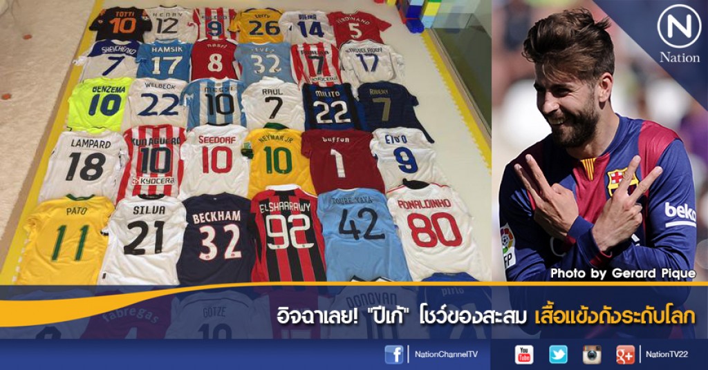 ภาพเสื้อแข่งของนักเตะฟุตบอลชื่อดังทั่วโลกที่ปราการหลังร่างโย่งชาวสแปนิชสะสมมาตอลดชีวิตการค้าแข้ง มีหลากหลายเลยทีเดียว อาทิ เดวิด เบ็คแฮม, ลีโอเนล เมสซี่, คริสเตียโน โรนัลโด้, หลุยส์ ซัวเรส, เนย์มาร์ ฯลฯ ได้ถูกโพสต์ผ่านทวิตเตอร์ชื่อ Gerard Pique ซึ่งทวิตเตอร์ส่วนตัวของเคราร์ด ปีเก้