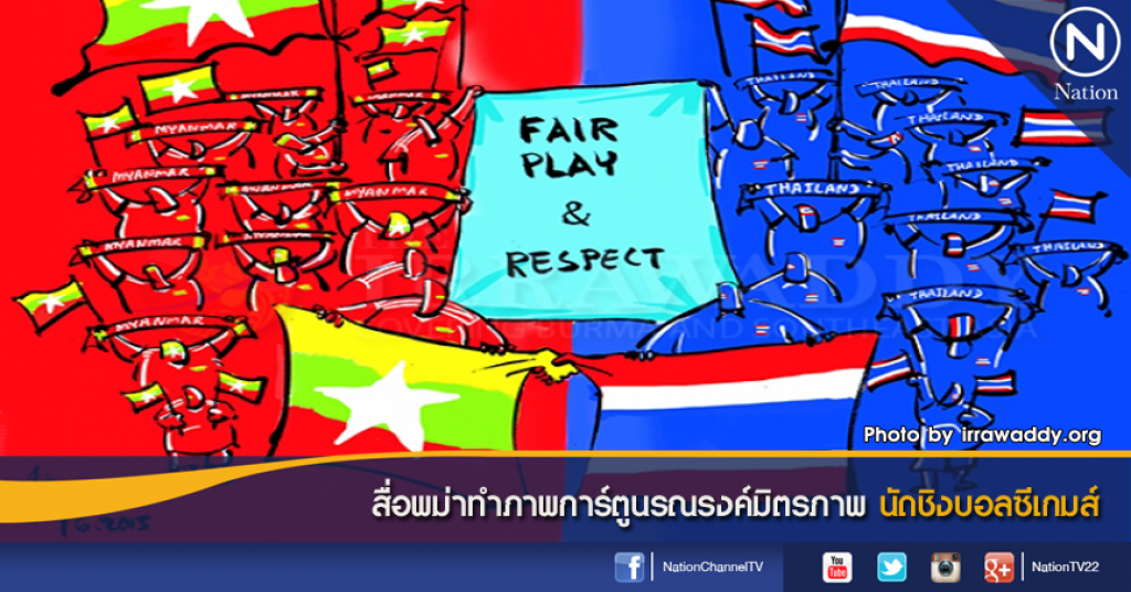 ถืออีกหนึ่งมุมดีๆที่มีค่ามากว่าเกมลูกหนัง เมื่อเว็บไซต์ irrawaddy.org สื่อจากประเทศเมียนมาร์เผยแพร่ภาพการ์ตูนรณรงค์เกมนัดชิงซีเกมส์ที่สนามกีฬาแห่งชาติสิงคโปร์ เมื่อค่ำวันจันทร์ที่ 15 มิถุนายน 2558 ที่ผ่านมา ภายใต้แคมเปญ "FAIR PLAY & RESPECT"