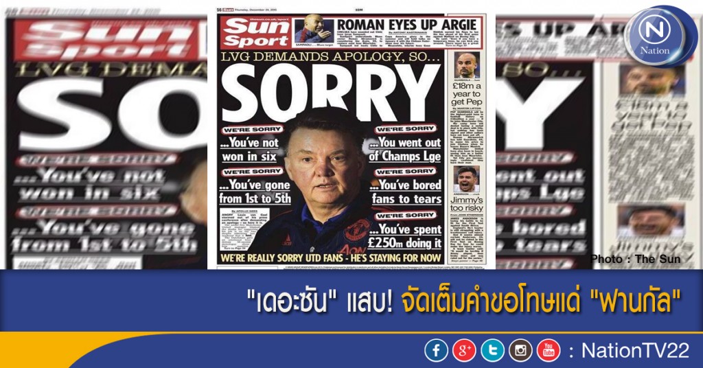 ล่าสุด "เดอะ ซัน" แท็บลอยด์ ชื่อดังแดนผู้ดี ก็จัดเต็มเขียนคำขอโทษตัวโตๆ พร้อมข้อความสุดแสบถึง 5 ข้อ ดังต่อไปนี้