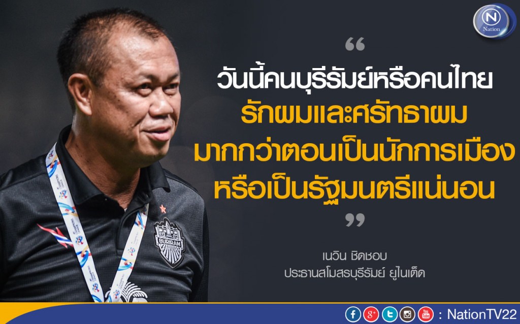 -เป็นทั้งนักธุรกิจ นักการเมือง และเจ้าของงทีมฟุตบอล ทำอะไรแล้วมีความสุขที่สุดมีความสุขกับปัจจุบันกับการเป็นลุงเนวิน และประธานสโมสรบุรีรัมย์ ยูไนเต็ด เป็นเวลาที่มีความสุขที่สุด แน่นอน 3 อาชีพนี้หนีไม่พ้นที่ต้องมีส่วนเกี่ยวพันกัน ประสบการณ์ที่ผ่านมาของชีวิต ทั้งถูกและผิดก็ต้องเรียนรู้และนำมาปรับปรุงแก้ไข เพื่อนำไปสู่สิ่งที่ดีกว่าและสามารถสร้างความสุขให้ผู้คน วันนี้ก็เป็นบทพิสูจน์แล้วว่า ตำแหน่งไม่สำคัญ ไม่จำเป็นต้องมีตำแหน่งหน้าที่ก็สามารถจะสร้างความสุข ความเจริญให้ผู้คนได้ และสามารถทำได้อย่างมีประสิทธิภาพมากกว่าด้วยซ้ำไป ไม่ว่าจะเป็นอะไรก็ไม่สำคัญแล้ววันนี้ มันสำคัญว่าคนศรัทธาและยอมรับคุณได้ขนาดไหน