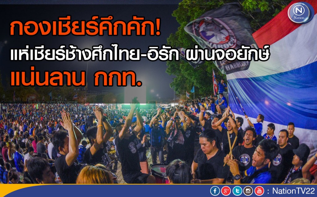 กองเชียร์คึกคัก! แห่เชียร์ช้างศึกไทย-อิรัก ผ่านจอยักษ์ แน่นลานกกท.