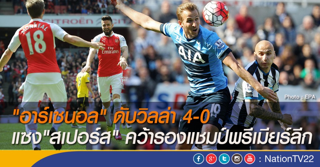 "อาร์เซนอล" ดับวิลล่า 4-0 แซง"สเปอร์ส" คว้ารองแชมป์พรีเมียร์ลีก