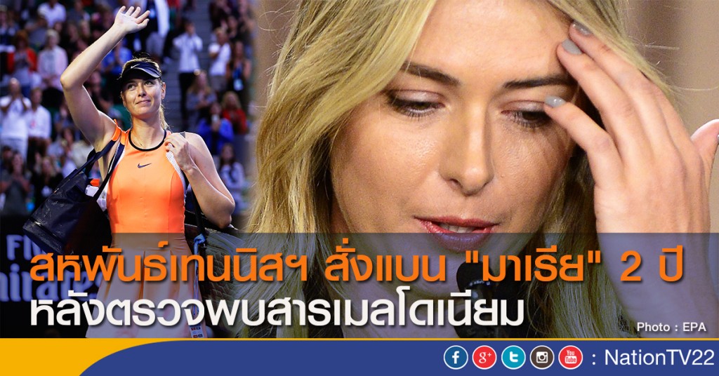 ทั้งนี้ผลจากการลงโทษ จะทำให้ ชาราโปว่า เจ้าของแชมป์ แกรนด์ สแลม 5 รายการ พลาดการแข่งขัน วิมเบิลดัน 2016 และมหกรรมกีฬา โอลิมปิก 2016 ที่นครริโอ เดอ จาเนโร ประเทศบราซิล วันที่ 5-21 สิงหาคมนี้