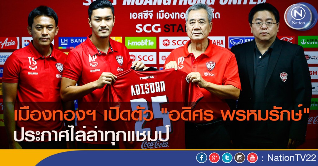 เมื่อเวลา 15.00น.ที่ผ่านมา ที่ห้องแถลงข่าวภายในสโมสร เอสซีจี เมืองทอง ยูไนเต็ด ได้มีการแถลงข่าวเปิดตัว อดิศร พรหมรักษ์ กองหลังรายใหม่ของสโมสรเอสซีจีเมืองทอง ยูไนเต็ด ที่ย้ายมาจากบีอีซี เทโรศาสน โดยมี พงษ์ศักดิ์ ผลอนันต์ ประธานสโมสร, "โค้ชแบน" ธชตวัน ศรีปาน และสื่อมวลชนจากหลายสำนักร่วมในการเปิดตัวครั้งนี้ โดยทางสโมสรได้มอบเสื้อหมายเลข25 ให้กับ อดิศร และไม่มีการเปิดเผยรายละเอียดใดๆ ในการย้ายตัวครั้งนี้