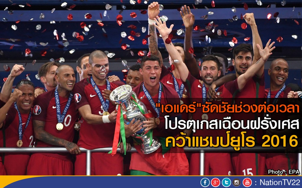 หมดเวลา 90 นาที ทั้ง 2 ทีมทำอะไรกันไม่ได้ เสมอ 0-0 ต้องเล่นในช่วงต่อเวลาพิเศษ 30 นาที และในนาทีที่ 109 โปรตุเกสได้ประตูขึ้นนำ จาก "เอแดร์" ยิงไกลที่หน้าเขตโทษ และเป็นประตูชัยให้ โปรตุเกส ชนะเจ้าภาพ ฝรั่งเศส ไป 1-0 คว้าแชมป์ยูโรเป็นครั้งแรกในประวัติศาสตร์