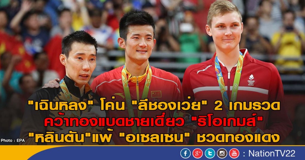 การแข่งขันกีฬาแบดมินตัน ในมหกรรมกีฬาโอลิมปิก 'ริโอ 2016' ที่ประเทศบราซิล วันเสาร์ที่ 20 สิงหาคม เป็นรอบชิงชนะเลิศ ประเภทชายเดี่ยว ที่สนามริโอเซนโทร พาวิลเลียน 4 ปรากฏว่า เฉิน หลง มือวางอันดับ 2 ของโลก จากจีน ที่โอลิมปิก"'ลอนดอน 2012 " ได้เหรียญทองแดง
