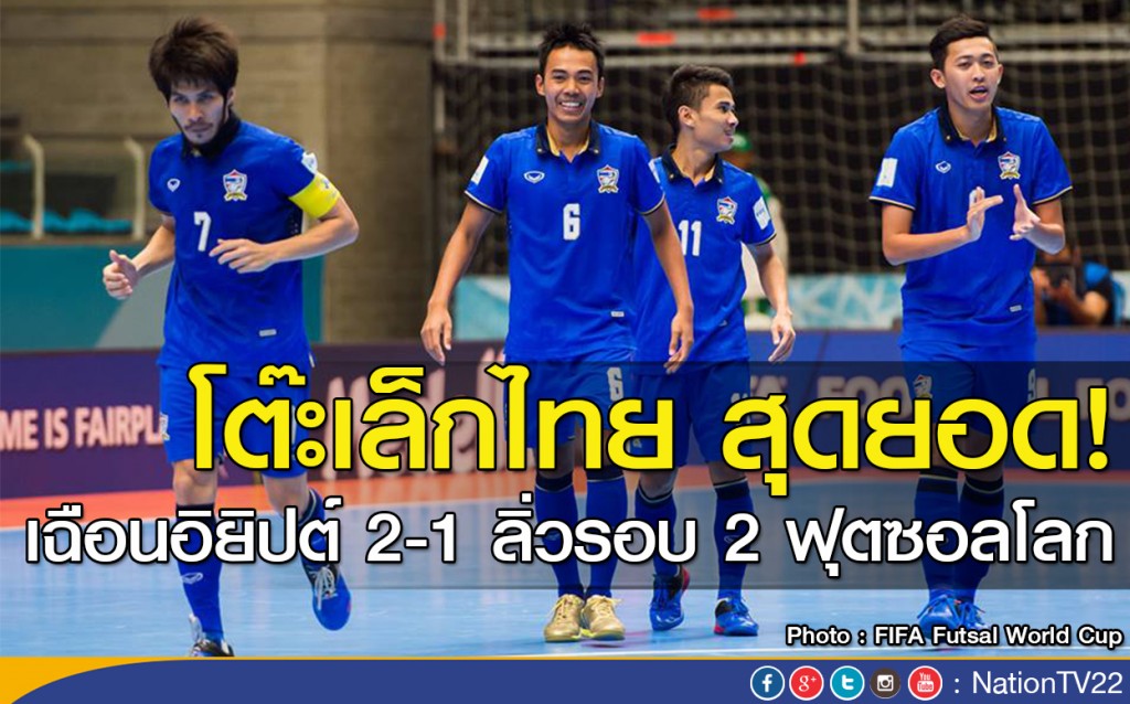 เมื่อเวลา 06.00 น. วันเสาร์ที่ 17 ก.ย.59 ทีมฟุตซอลทีมชาติไทยลงสนามฟุตซอลโลก 2016 ที่ประเทศโคลอมเเบีย ซึ่งเป็นนัดสุดท้ายรอบแรกสายบี ฟุตซอลไทย อันดับ 13 ของโลก พบ อียิปต์ อันดับ 22 ของโลก ใครชนะจะเป็นที่สองของกลุ่มทันทีพร้อมเข้ารอบสองต่อไป หากเสมอไทยจะเป็นที่สองด้วยการมีประตูได้-เสียที่ดีกว่า
