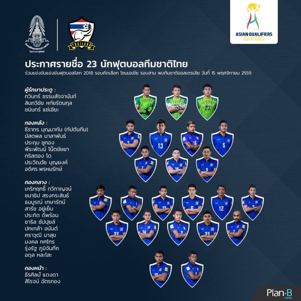 สำหรับรายชื่อ 23 นักเตะไทย มีดังนี้