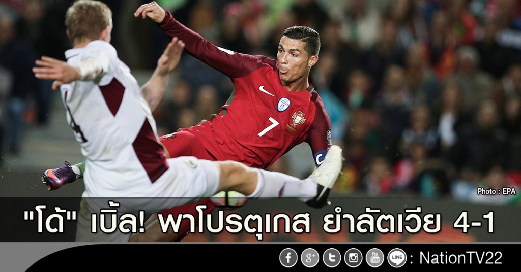 นาที 67 ลัตเวีย ตีเสมอเป็น 1-1 จาก อาร์เทอร์ส ซูซินส์ ตัวสำรอง ทว่าอีก 2 นาที โปรตุเกสกลับมานำ 2-1 จากลูกโขกของ ริคาร์โด้ คาร์วัลโญ่ นาที 85 โรนัลโด้ วอลเลย์เผาขนให้โปรตุเกสหนีไป 3-1 และช่วงทดเจ็บ บรูโน่ อัลเวส โหม่งปิดเกมให้โปรตุเกสถล่มไป 4-1 โปรตุเกส เก็บเพิ่มเป็น 9 แต้ม จาก 4 นัด ห่างจ่าฝูง สวิตเซอร์แลนด์ 3 แต้ม ส่วน ลัตเวีย มี 3 แต้ม อยู่รองบ๊วย