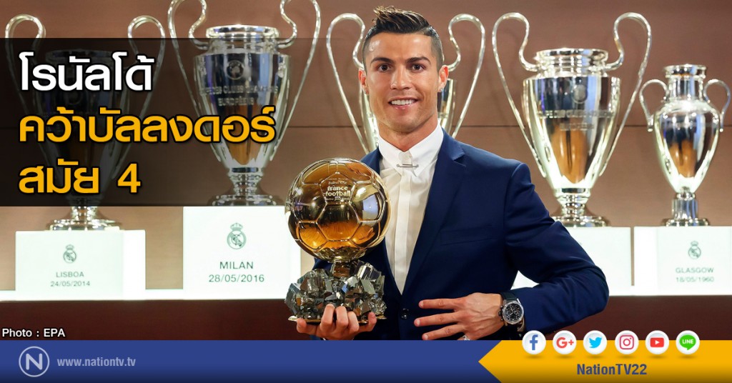 นิตยสาร ฟร็องซ์ ฟุตบอล ได้ทำการประกาศรางวัลนักเตะแห่งปี ซึ่งมีแคนดิเดต 3 รายคือ โรนัลโด้, เมสซี่ และ อองตวน กรีซมันน์ แนวรุกของ แอตเลติโก มาดริด แต่สุดท้ายไม่มีพลิกโผ เมื่อดาวเตะทีมชาติโปรตุเกส คว้ารางวัลบอลทองคำอีกครั้ง ต่อจากปี 2008, 2013, 2014โรนัลโด้ วัย 31 ปี ยิงไป 51 ประตู จาก 54 เกมที่ลงเล่นให้ "ราชันชุดขาว"เรอัล มาดริด และทีมชาติโปรตุเกส รวมทั้งยังพาต้นสังกัดคว้าแชมป์ ยูเอฟ่า แชมเปี้ยนส์ ลีก สมัยที่ 11 และเกียรติยศสูงสุดกับทีมชาติพาทีมชาติโปรตุเกส คว้าแชมป์ ยูโร 2016 ที่ประเทศฝรั่งเศส