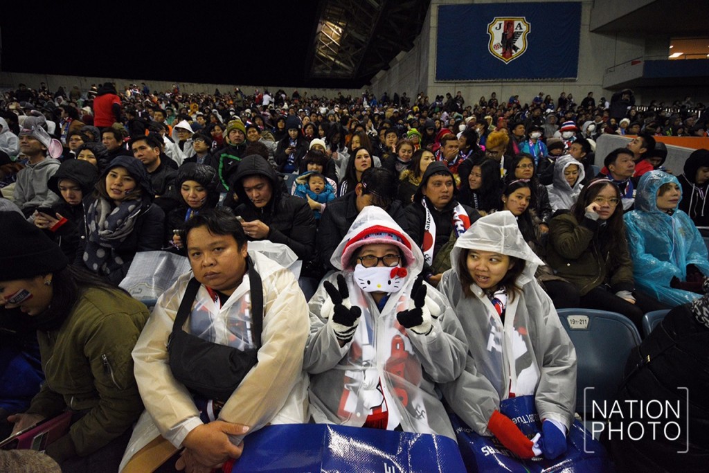 หนาวแค่ไหนก็ไม่หวั่น กองเชียร์ทีมชาติไทยนั่งตากฝนทนหนาว เพื่อให้กำลังใจทีมชาติไทย การแข่งขันฟุตบอลโลก รอบคัดเลือก โซนเอเชีย ญี่ปุ่น VS ไทย สนามไซตามะ สเตเดี้ยม